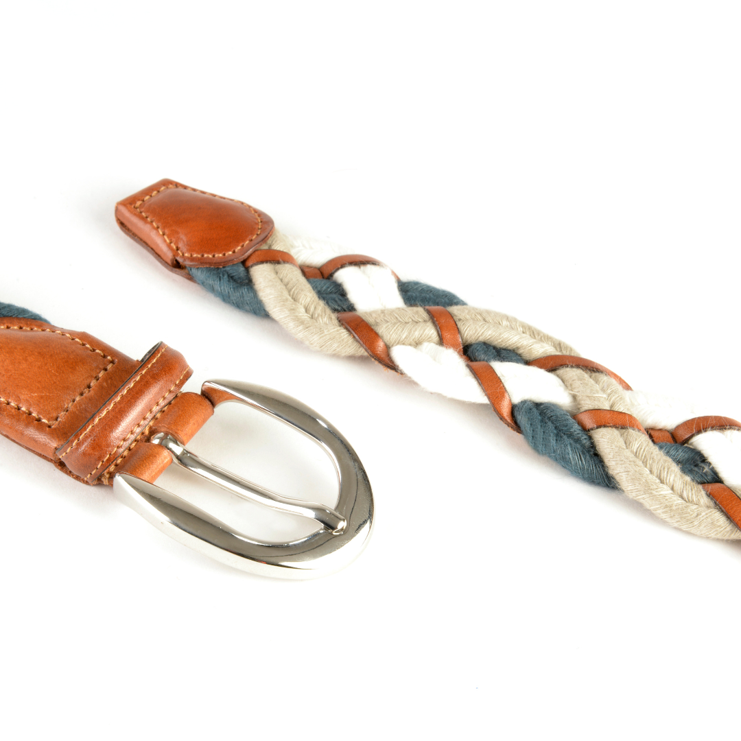 Elegant braided belt made of 3 Linen Soutache tied by 2 yarns of fine vegetable leather, for a perfect mix of style and freedom.