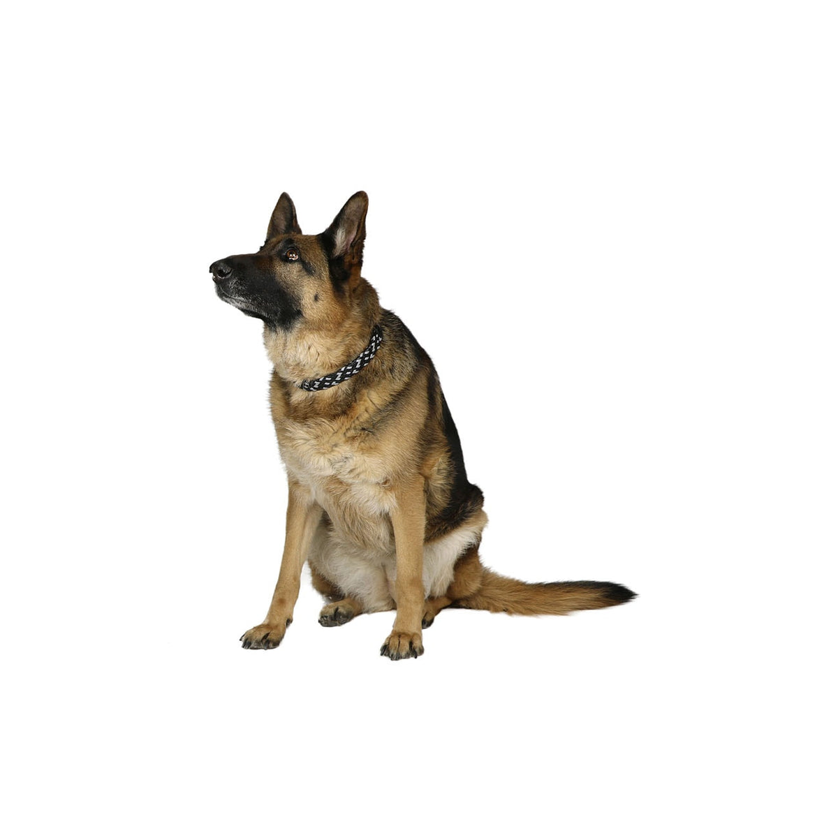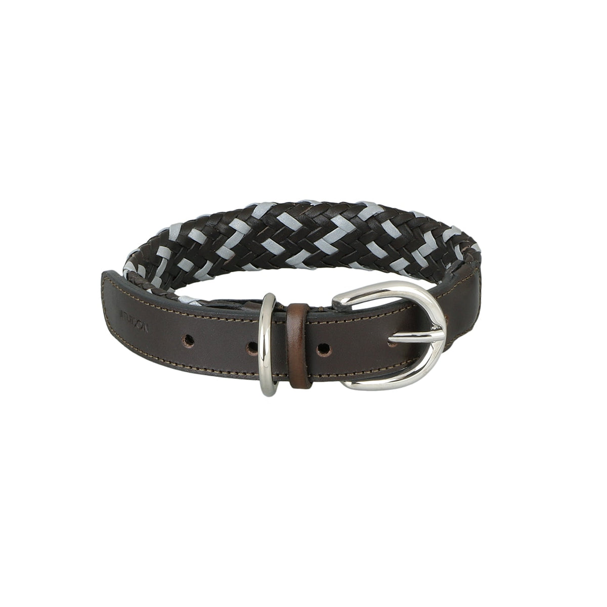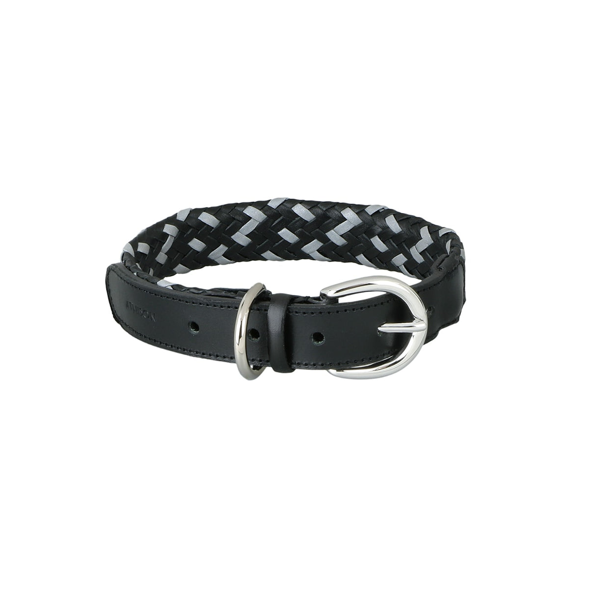 Very resistant leather and reflective fabric collar. It ensures greater visibility and safety by reflecting the light during dark hours. This item is wearable by medium/big sized dogs. Matching items: Athison’s reflective 11mm leash medium, Athison’s reflective bracelet (available in the same color combinations).