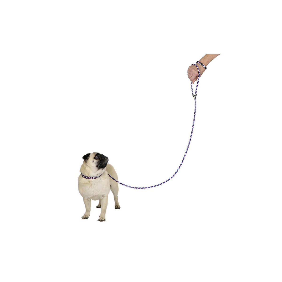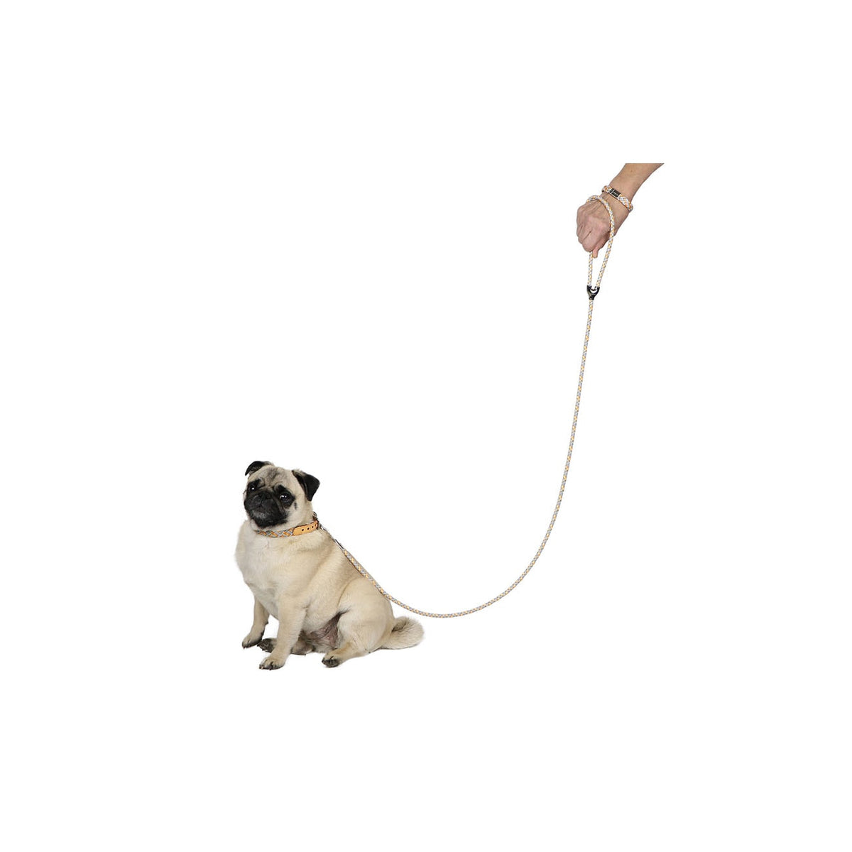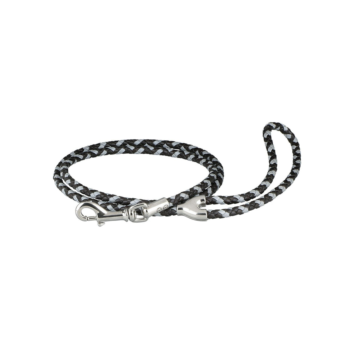 Very resistant leather and reflective fabric leash. It ensures greater visibility and safety by reflecting the light during dark hours. This item is wearable by small/medium dogs. All our leashes are 120 cm long.