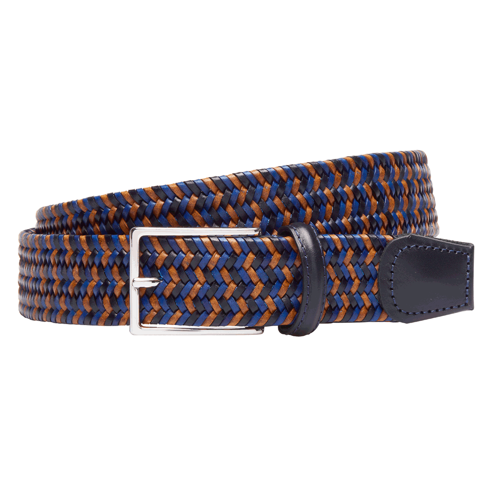 Braided elastic belt made of recycled leather. Offered in the Offered in multicolour version, this belt is a must-have for any look.