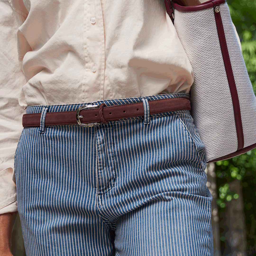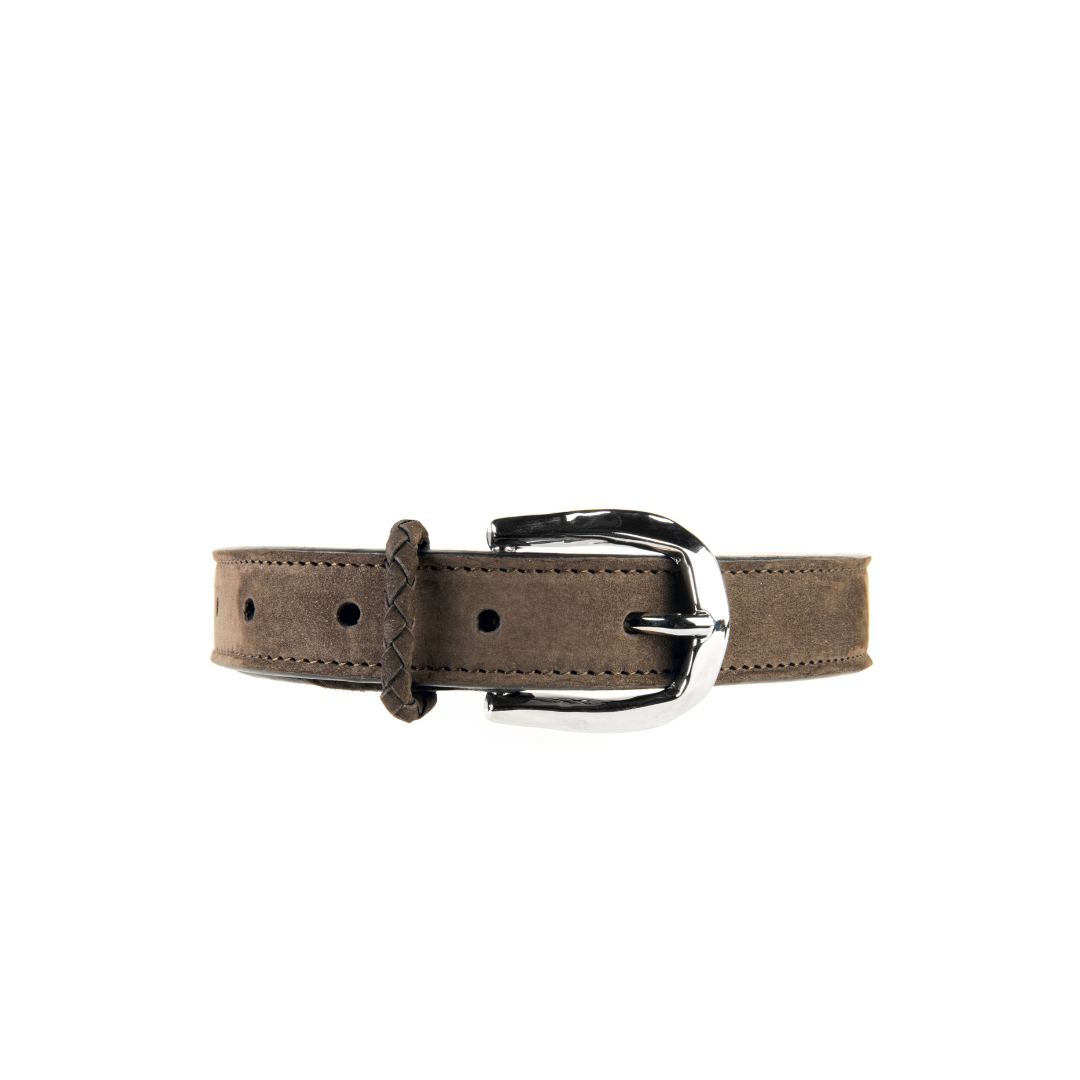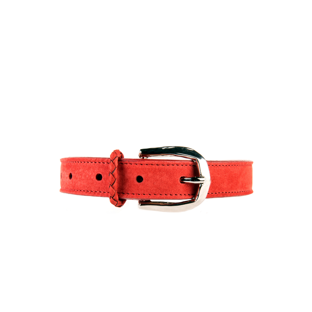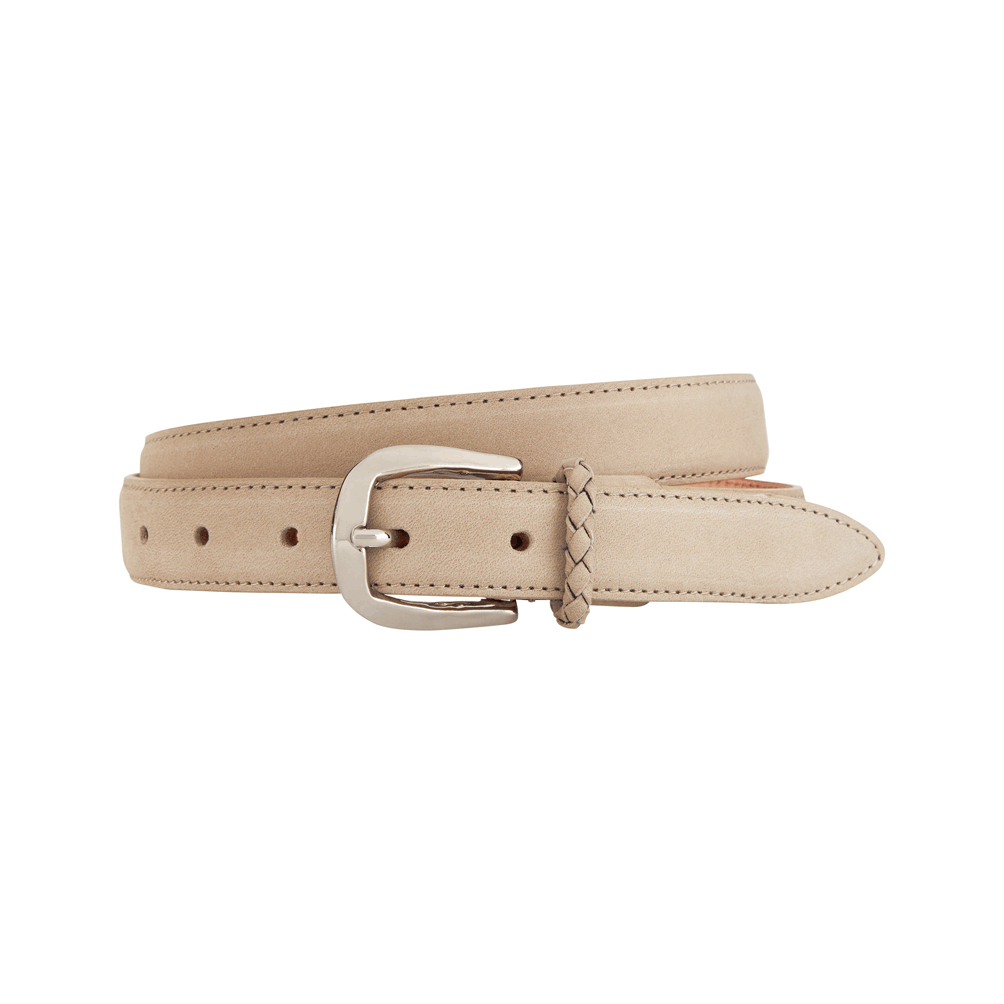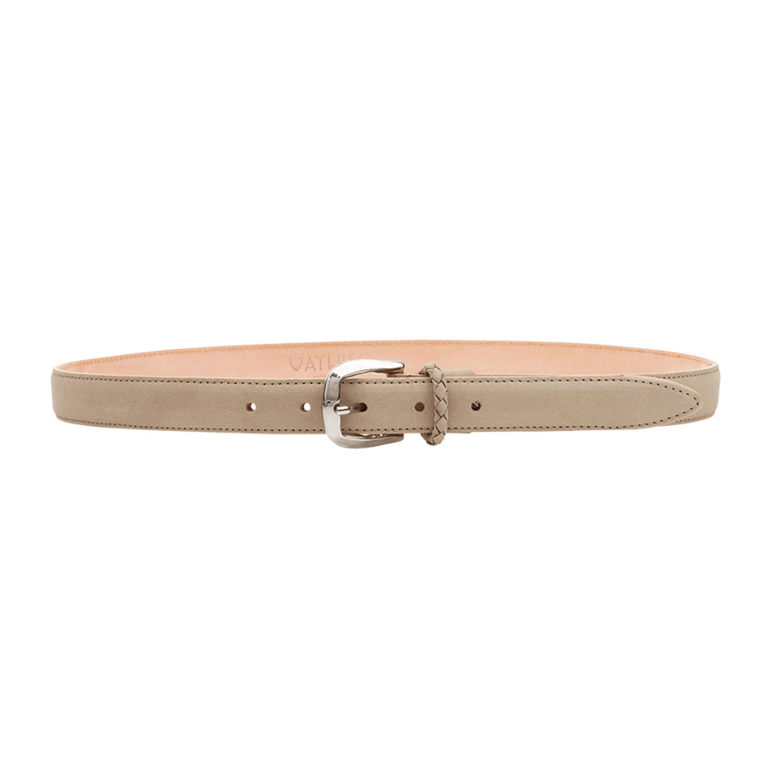 Nubuck leather belt from Athison woman’s collection, with the unique braided loop, lined with fine vegetable leather. Perfectly matched with 2 Nubuck leather bracelets in the same colour variants.