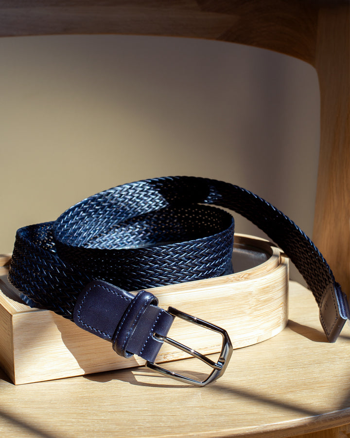 The first braided belt in the world to be completely made with leather threads obtained from scraps of recycled real leather and finely cut in strips with circular section.