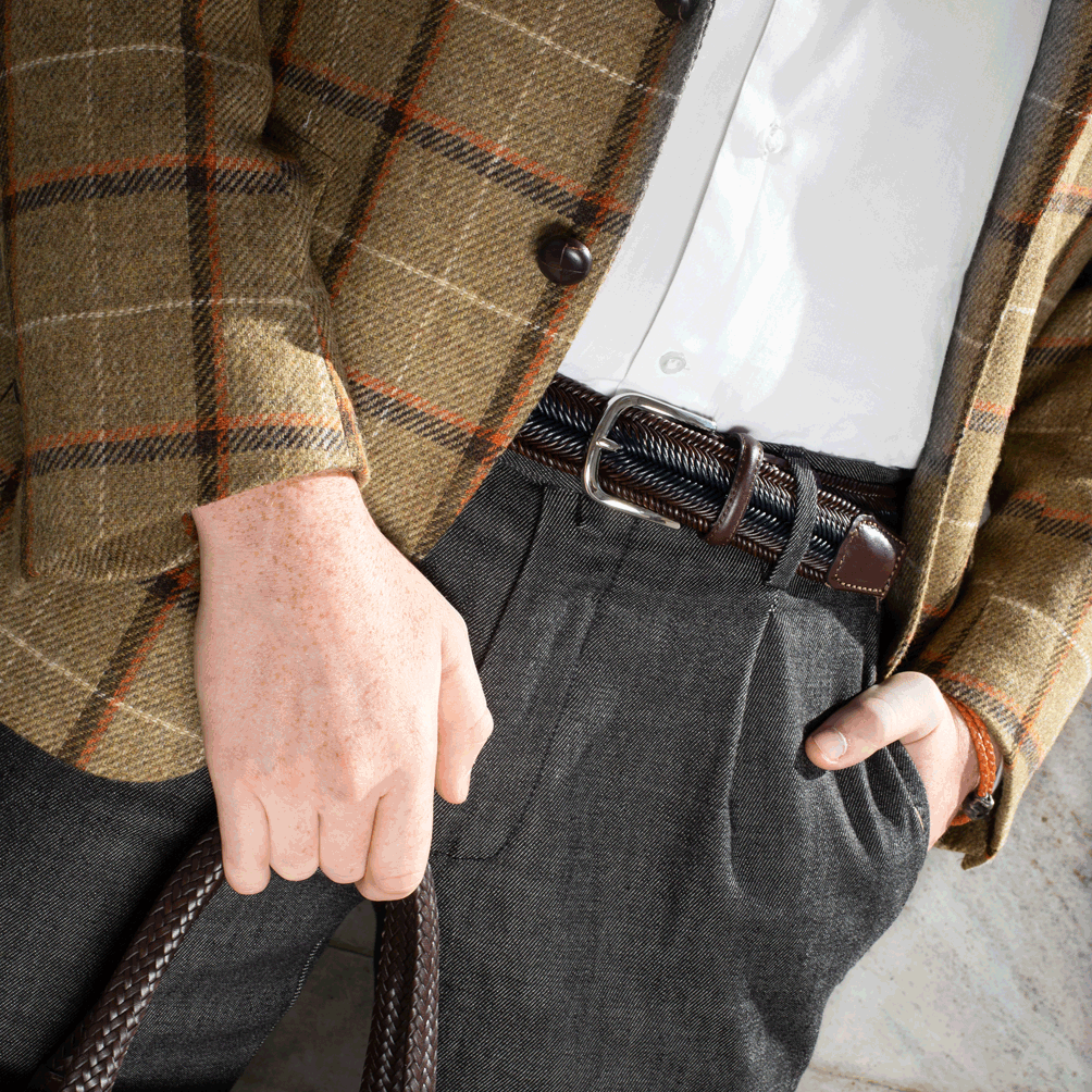 The first braided belt in the world to be completely made with leather threads obtained from scraps of recycled real leather and finely cut in strips with circular section.