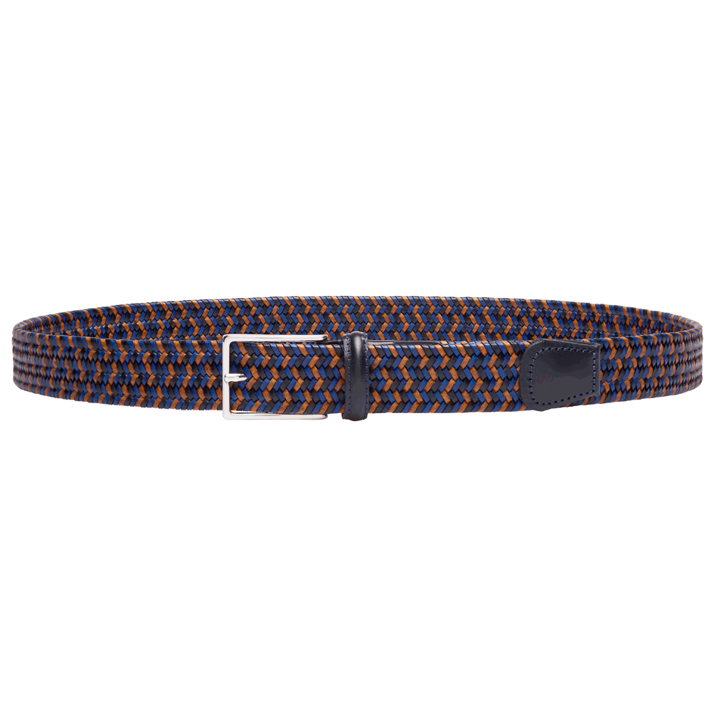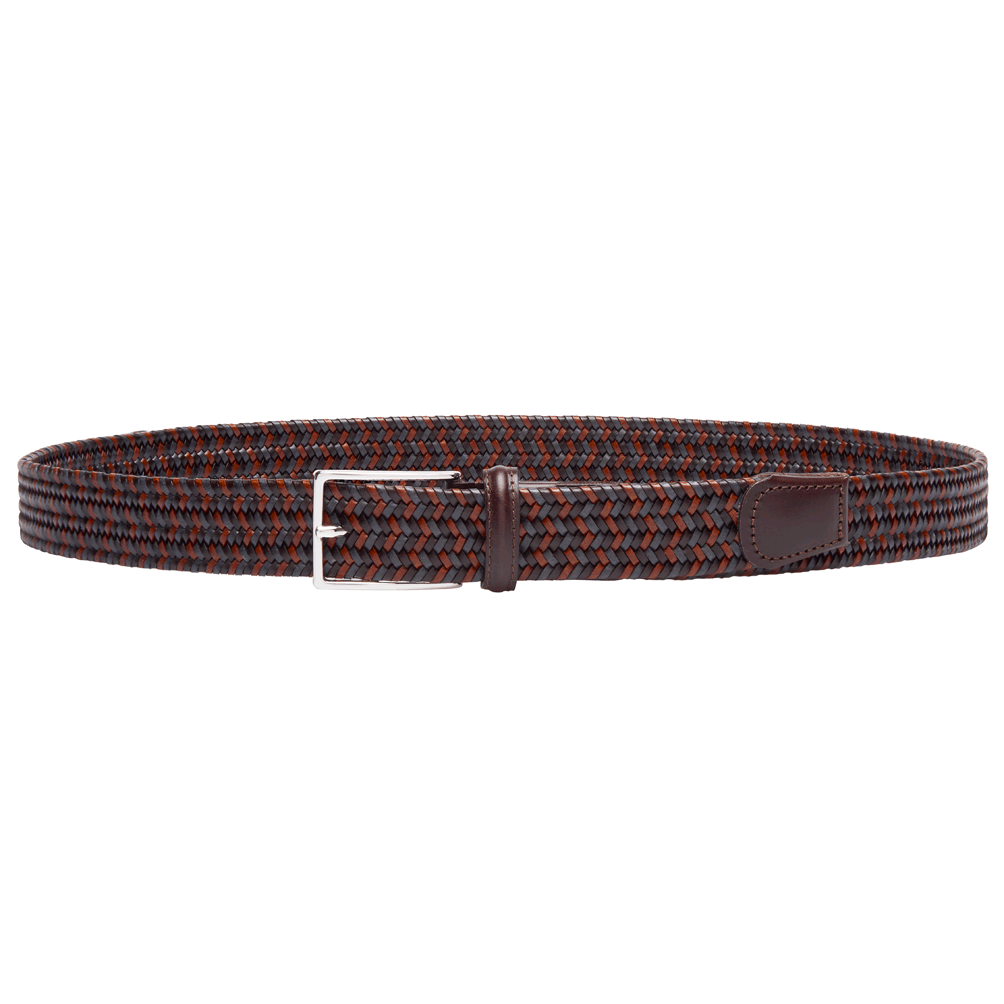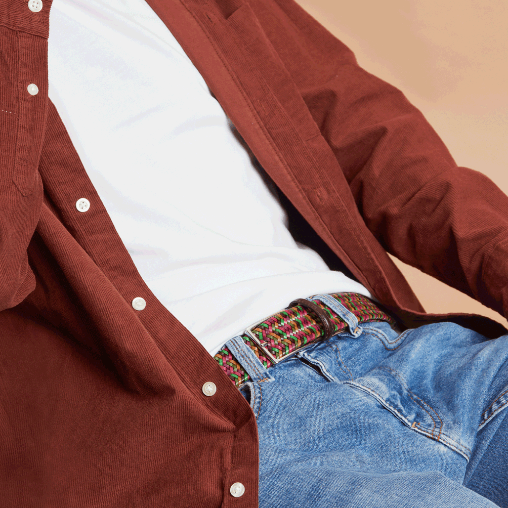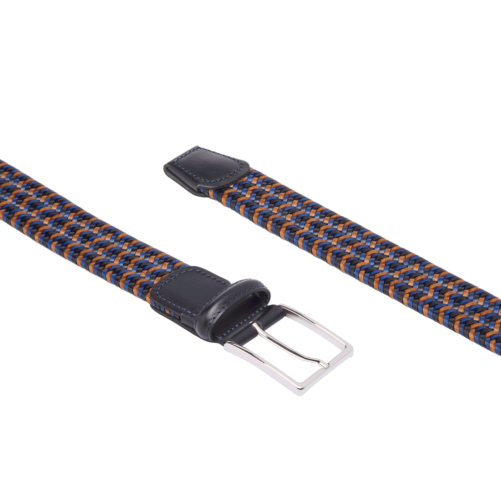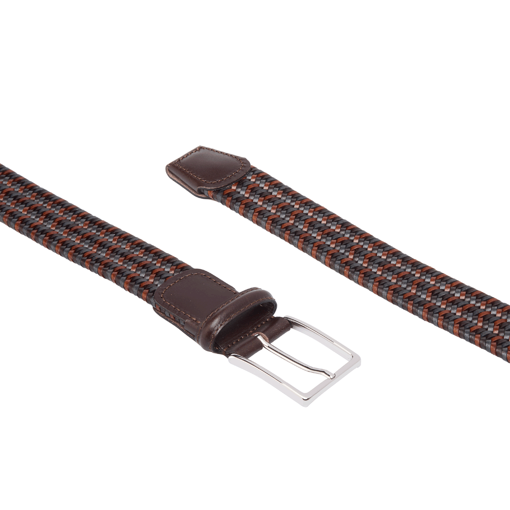Braided elastic belt made of recycled leather. Offered in the Offered in multicolour version, this belt is a must-have for any look.