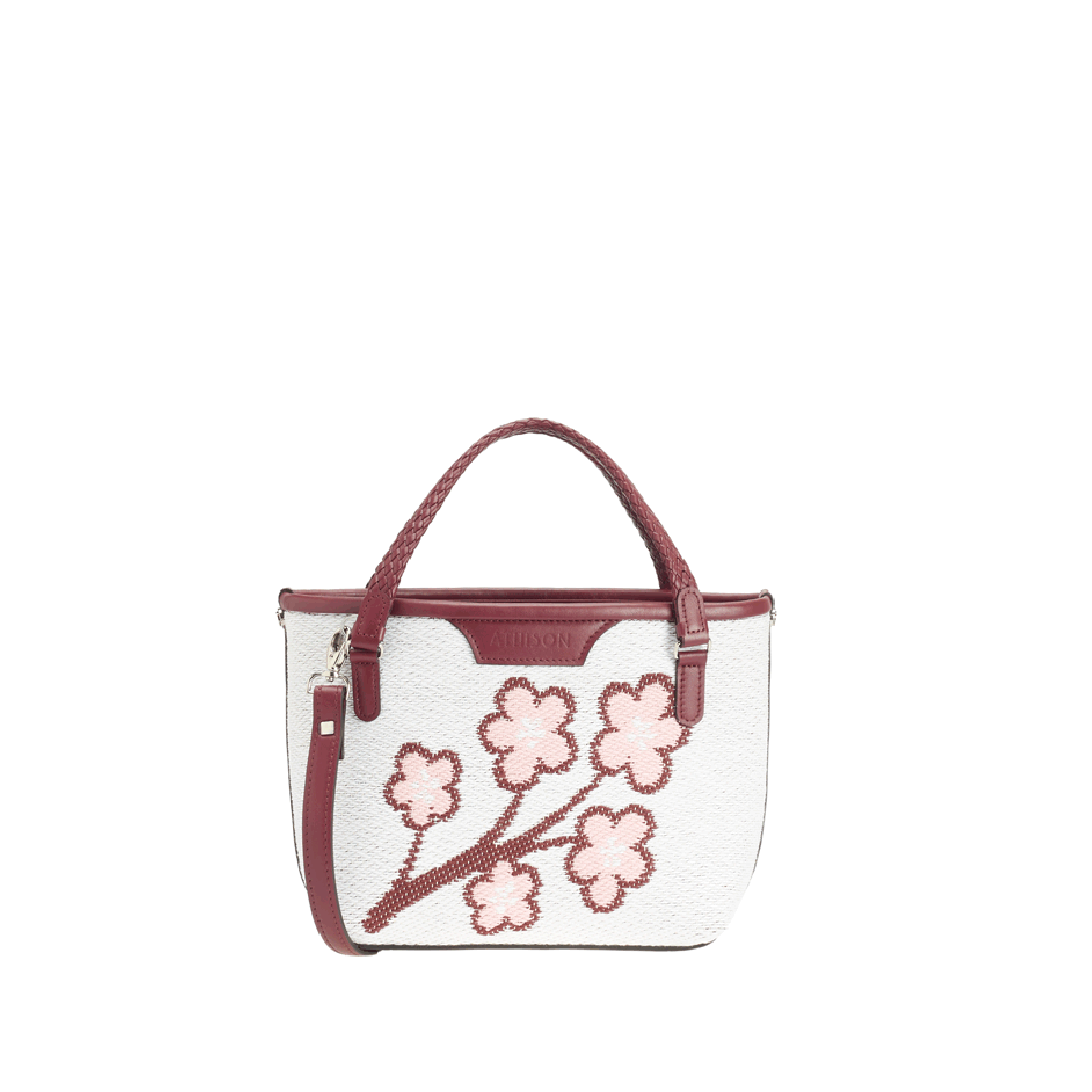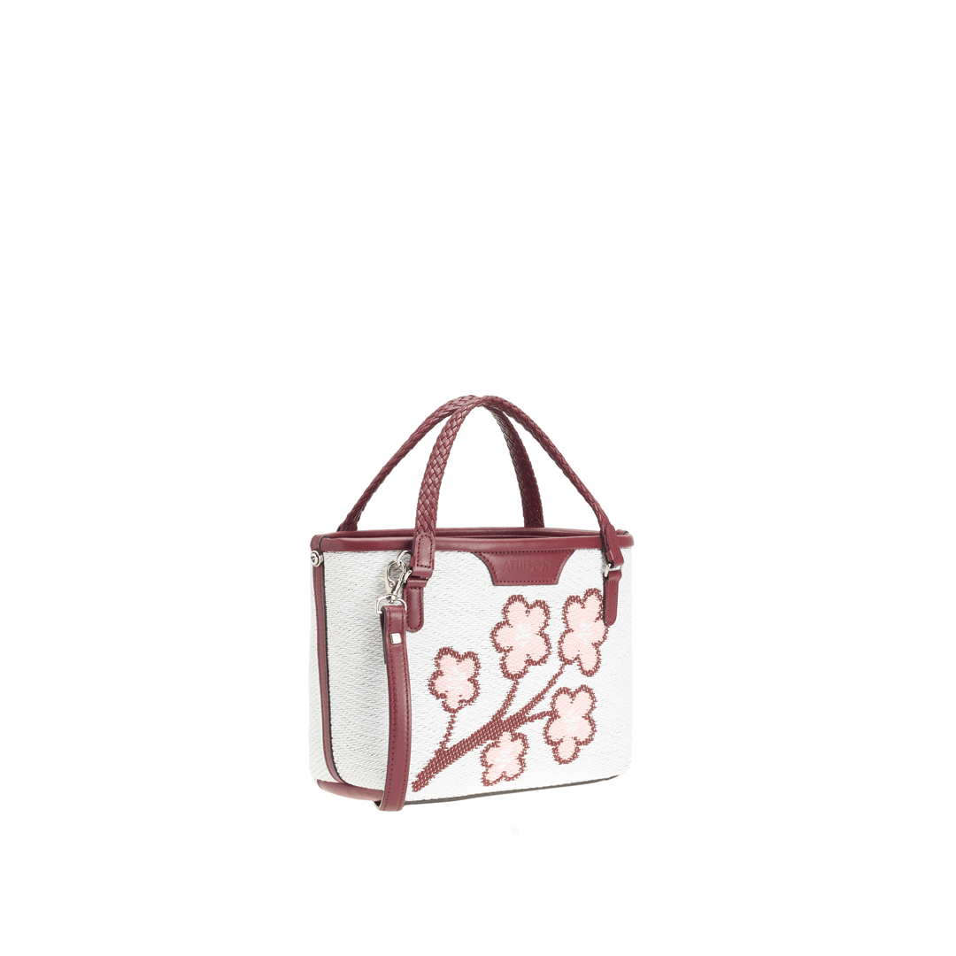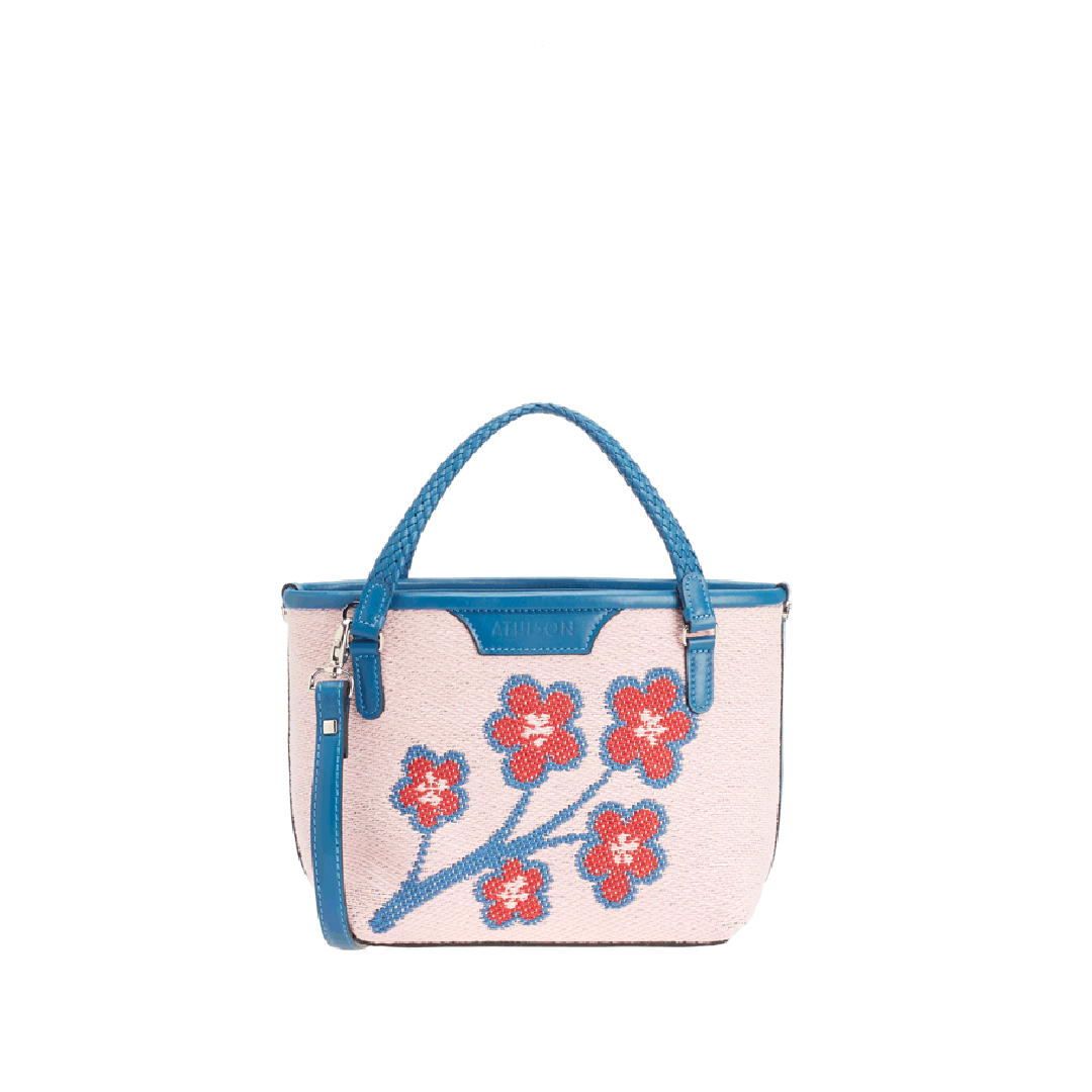 The Sakura Twig Ban Bag is made of braided cotton and the style is designed to reproduce the blossoming of the Japanese cherry tree.