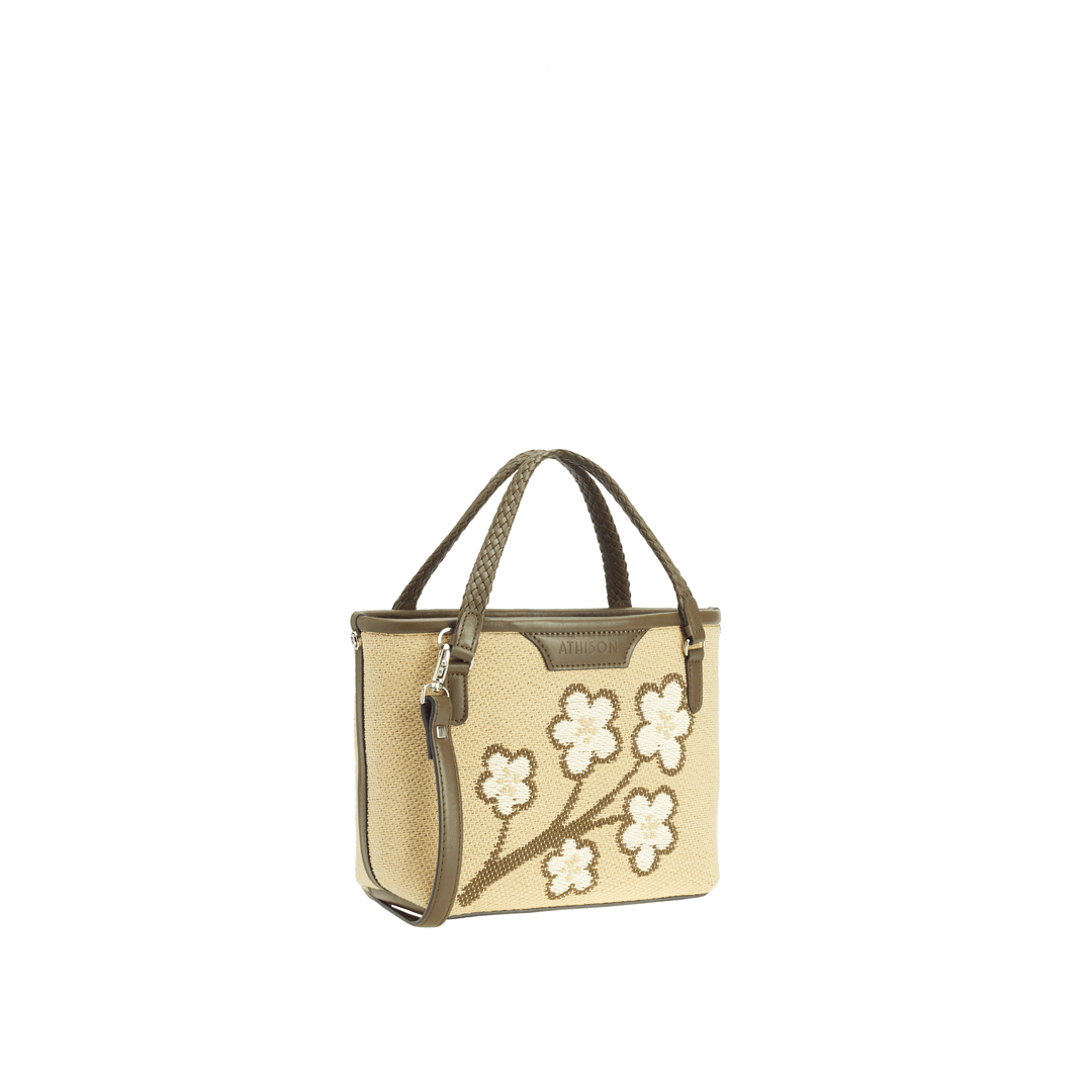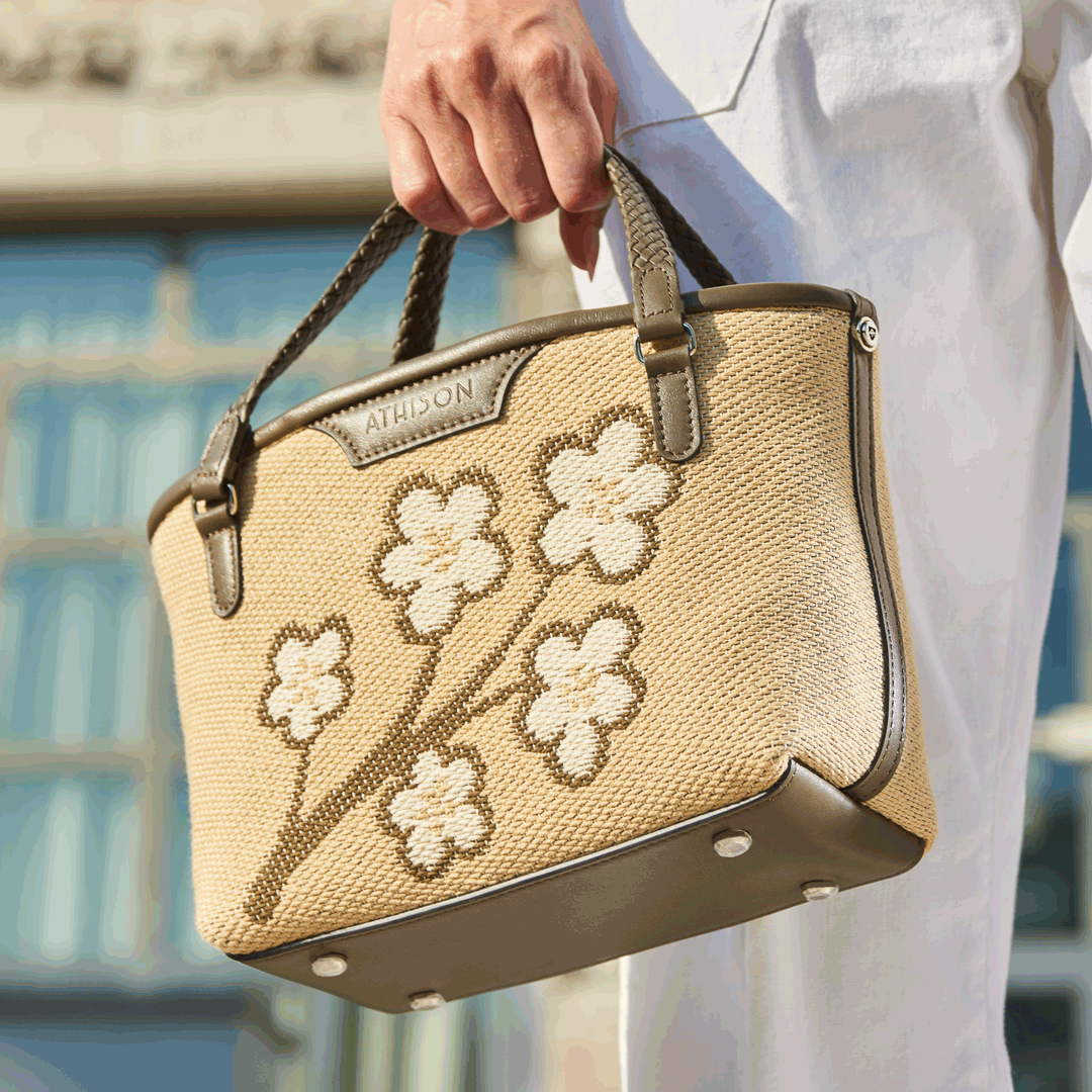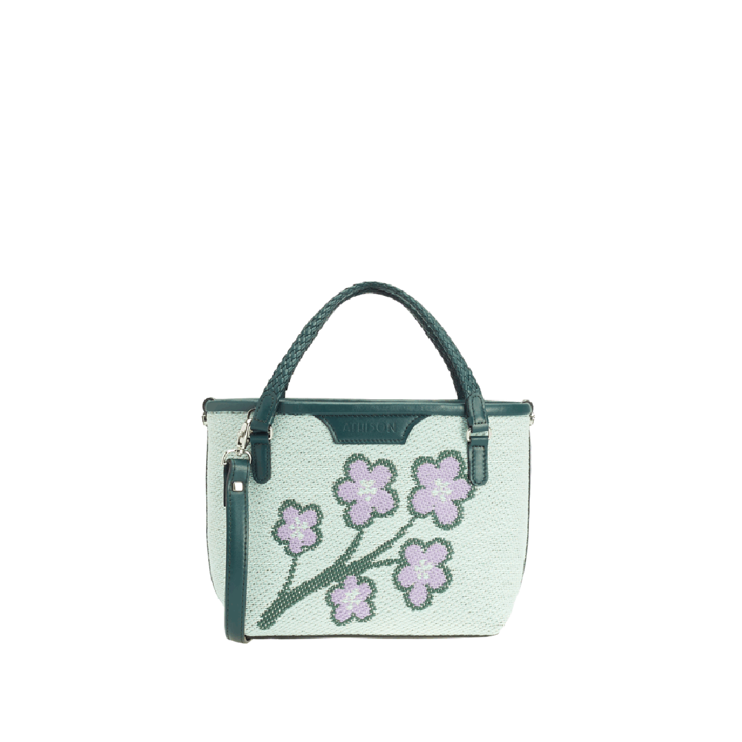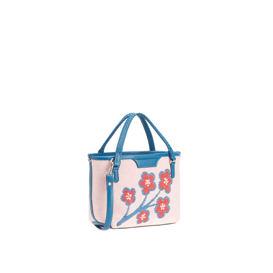 The Sakura Twig Ban Bag is made of braided cotton and the style is designed to reproduce the blossoming of the Japanese cherry tree.