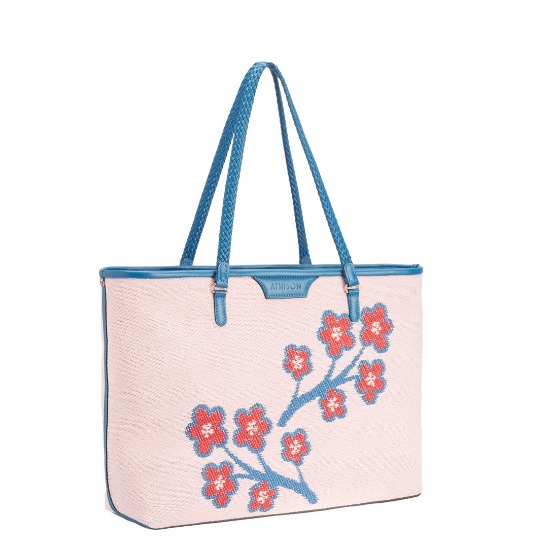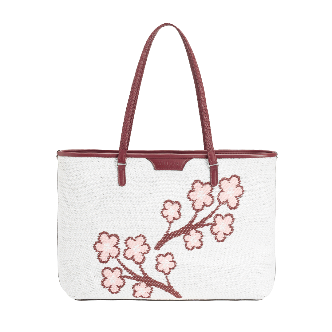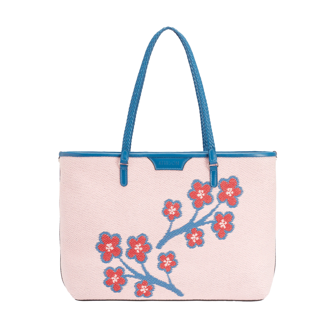 The Sakura Twig Ban Bag is made of braided cotton and the style is designed to reproduce the blossoming of the Japanese cherry tree.