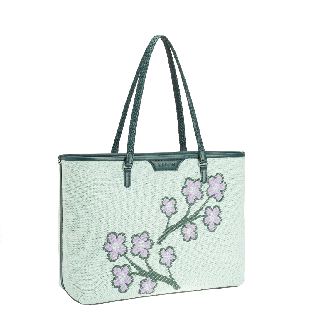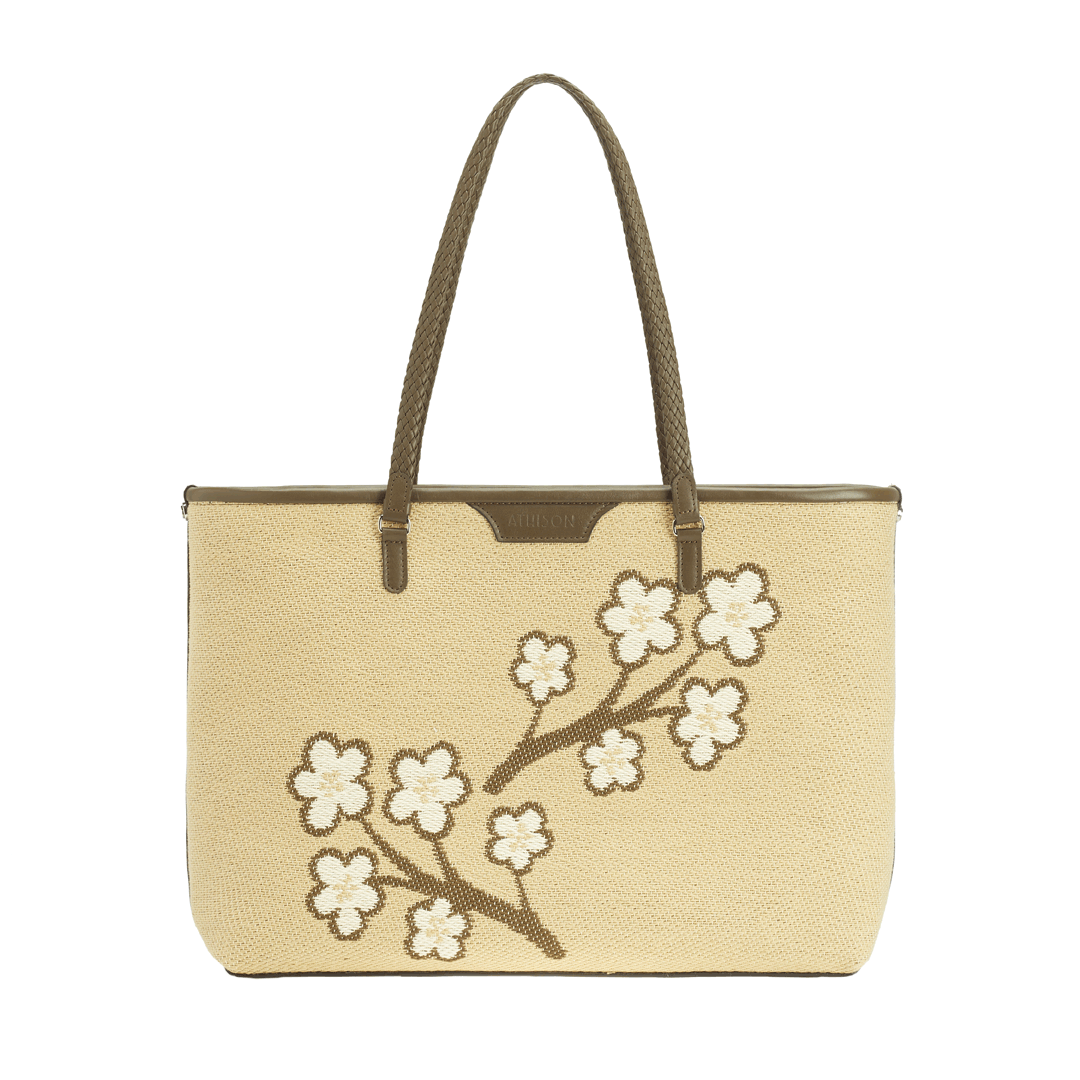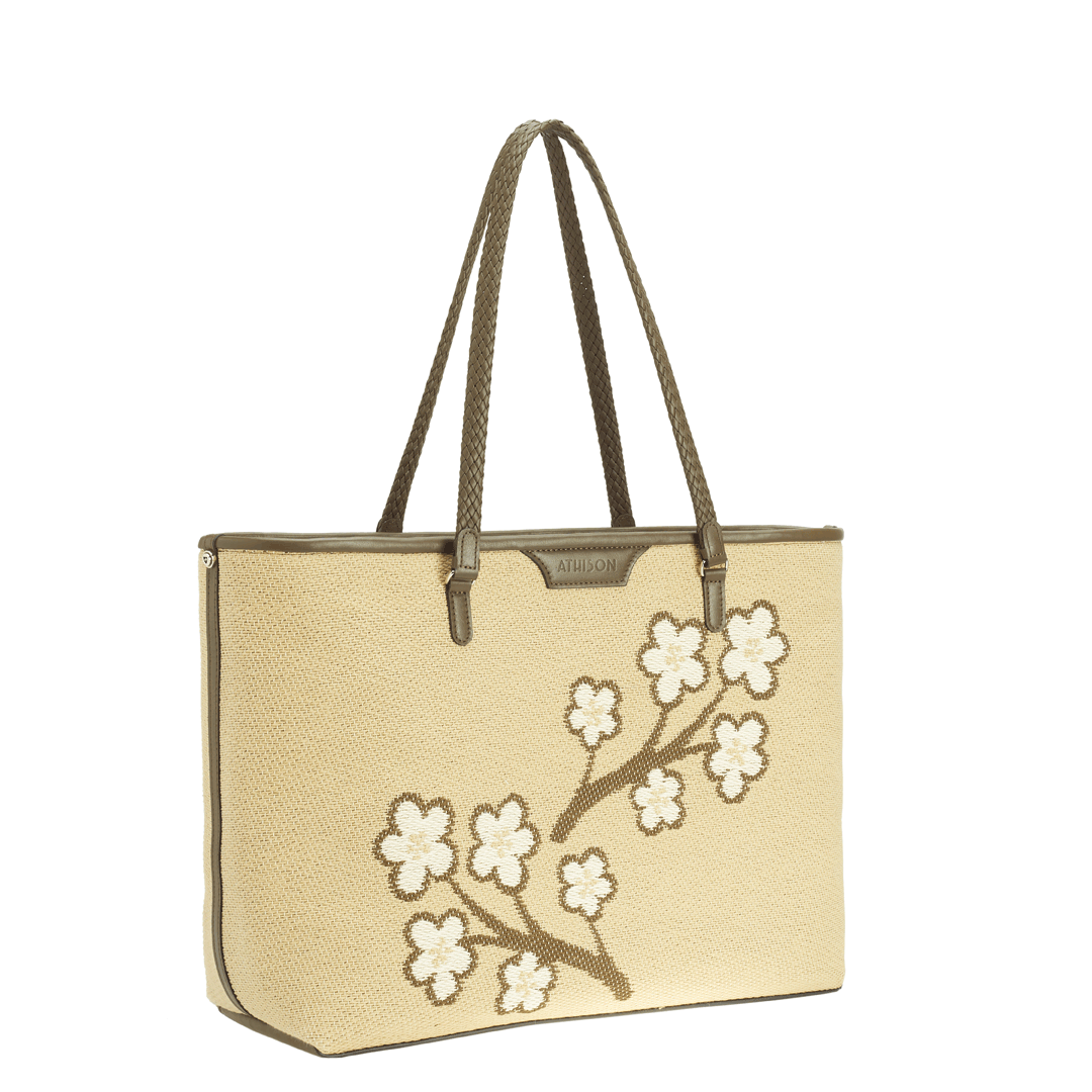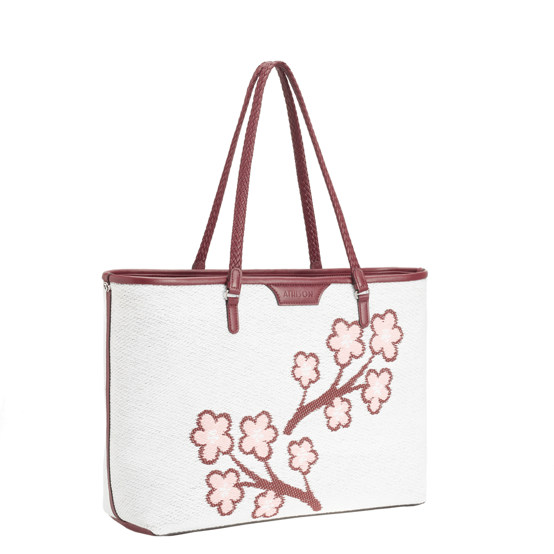 The Sakura Twig Ban Bag is made of braided cotton and the style is designed to reproduce the blossoming of the Japanese cherry tree.