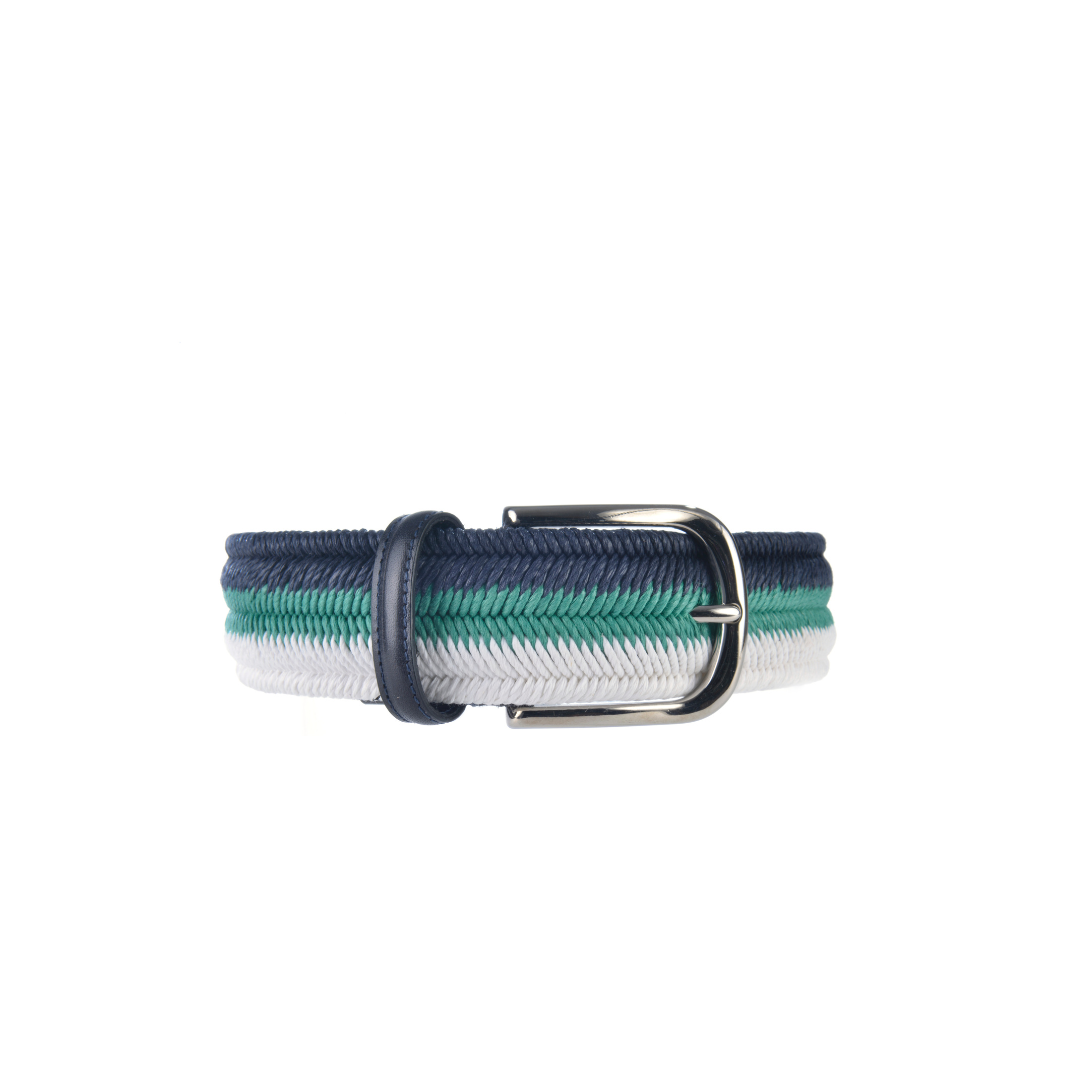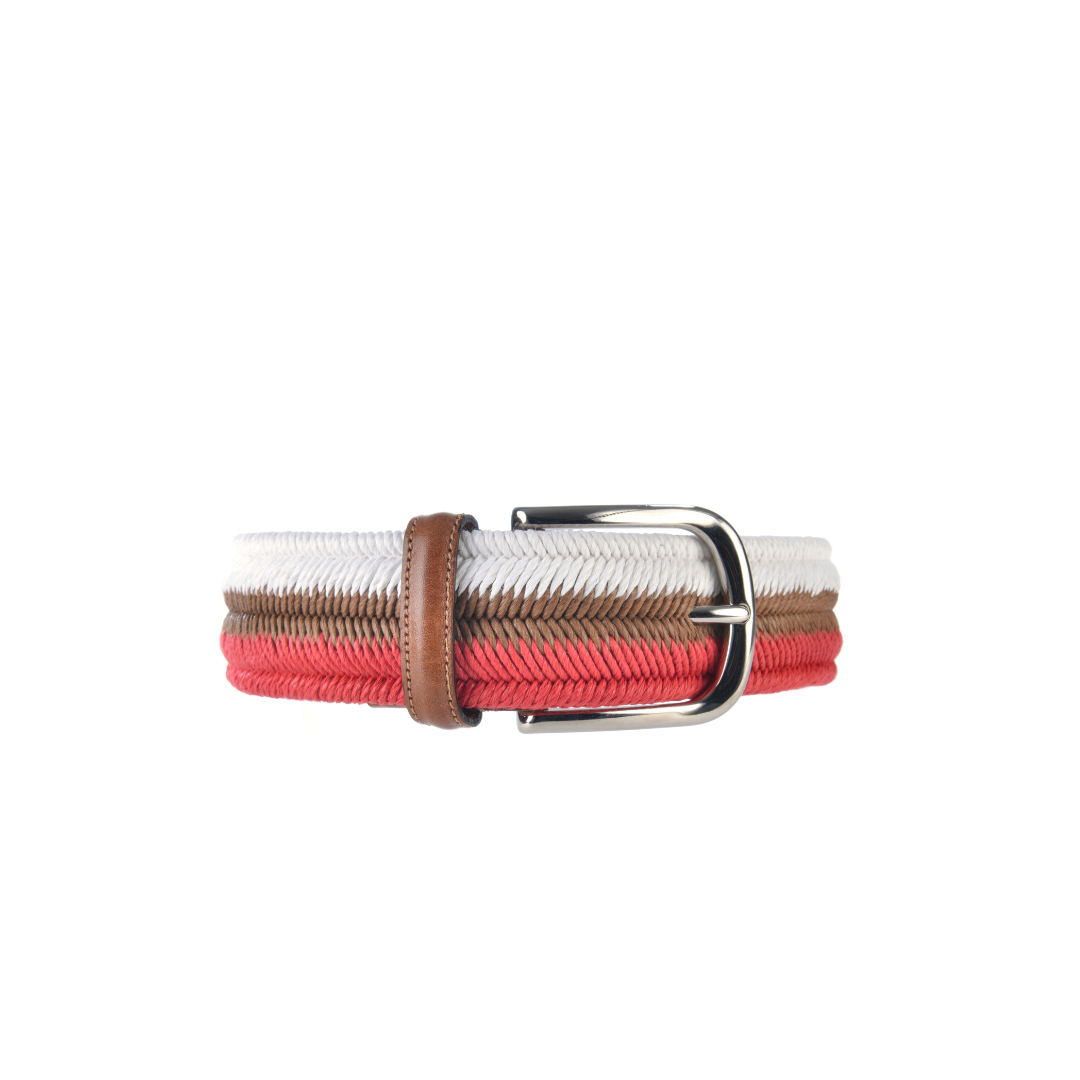 27 twisted cotton yarns are fishbone braided for an endless number of colour combinations. Loop and tip are made of fine vegetable leather.