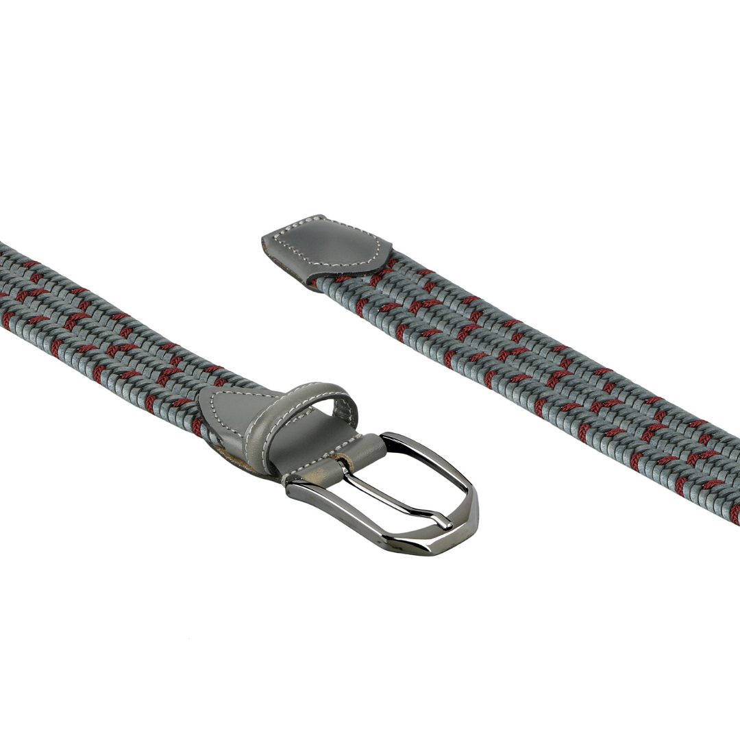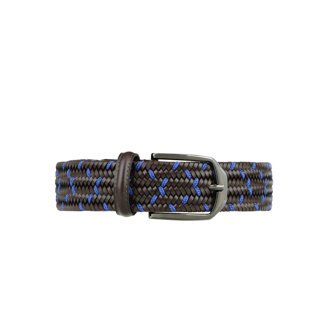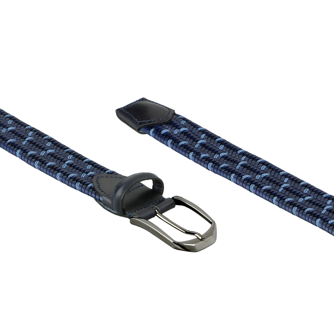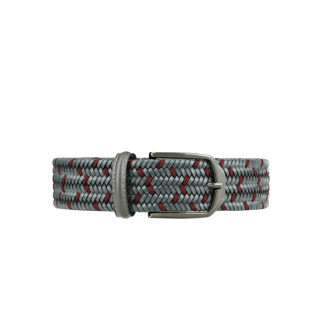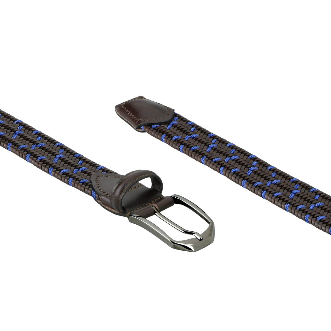 Braided elastic belt made of recycled leather. Rayon yarns add personality to the more classic colours of the leather.