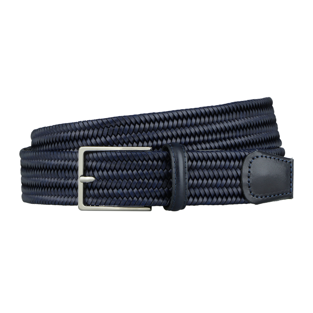 Braided elastic belt made of recycled leather. Offered in the classic colours, this belt is a must-have for any look.