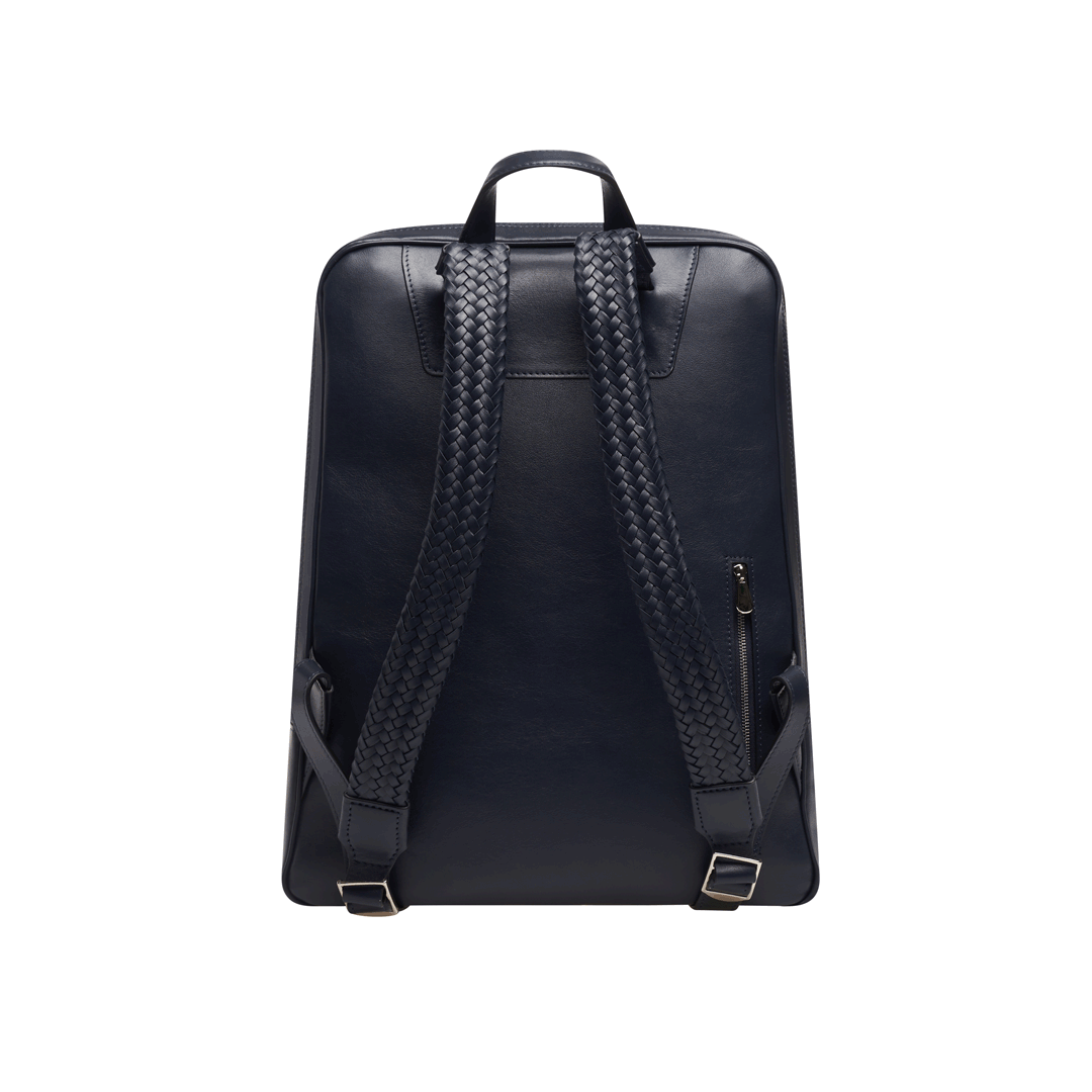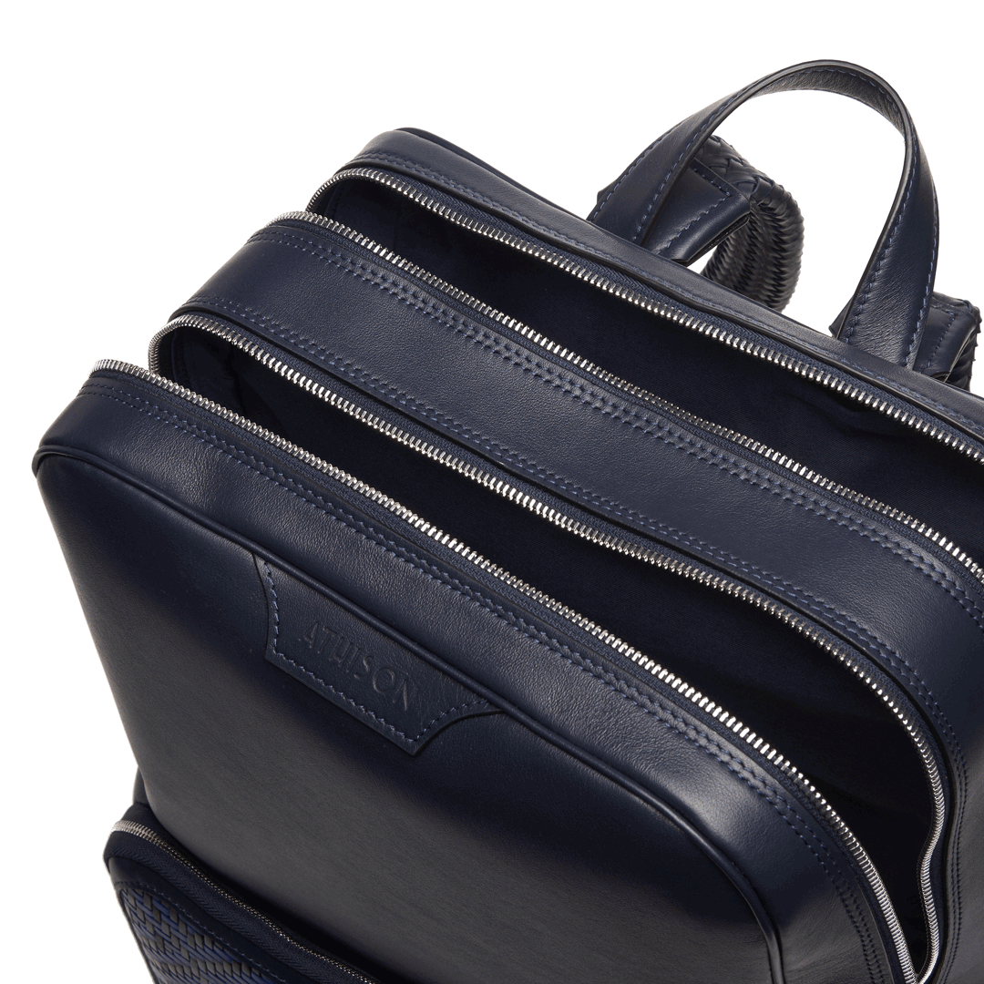 Braided Leather Backpack "Dufour" Navy and Blue