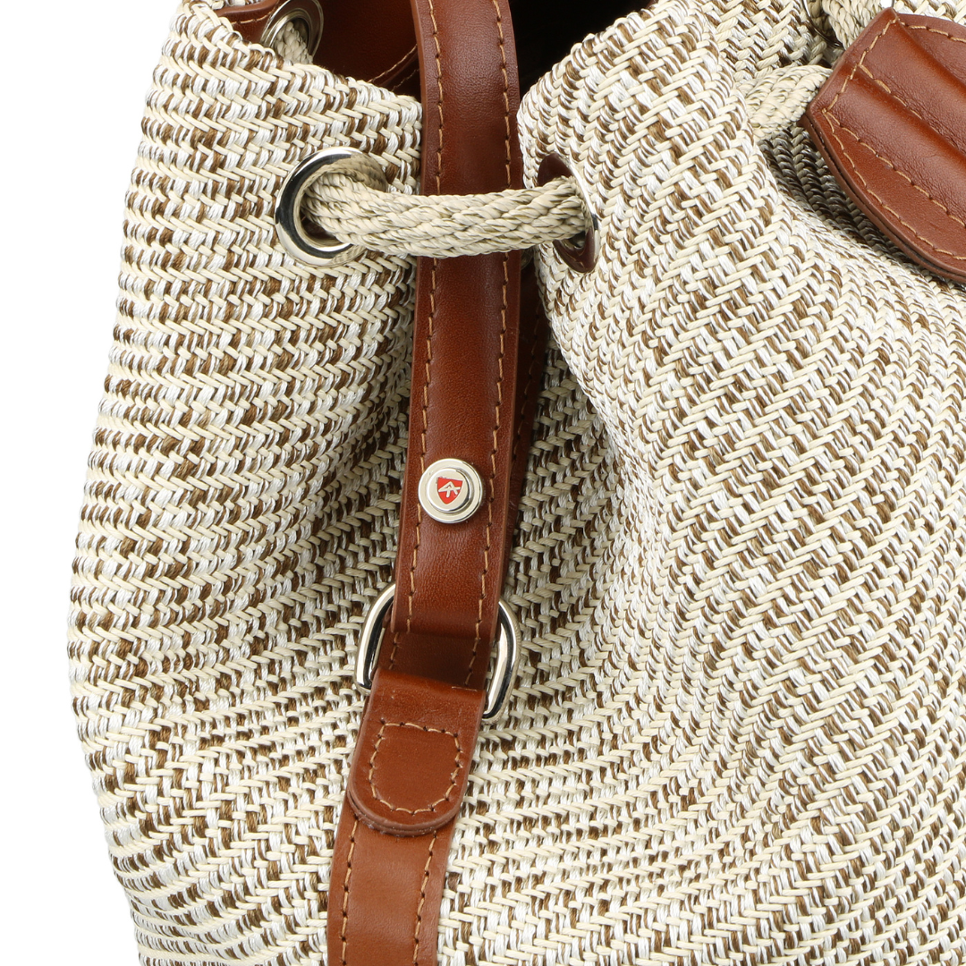 1.056 cotton threads are tied one by one to make up the base of a unique and inimitable woven material. Cotton is waxed with potato flour starch, in line with the company’s production processes that favor the use of natural, non-toxic materials. We use the highest expression of the best vegetable-tanned leather, skillfully processed by Tuscany tanneries.