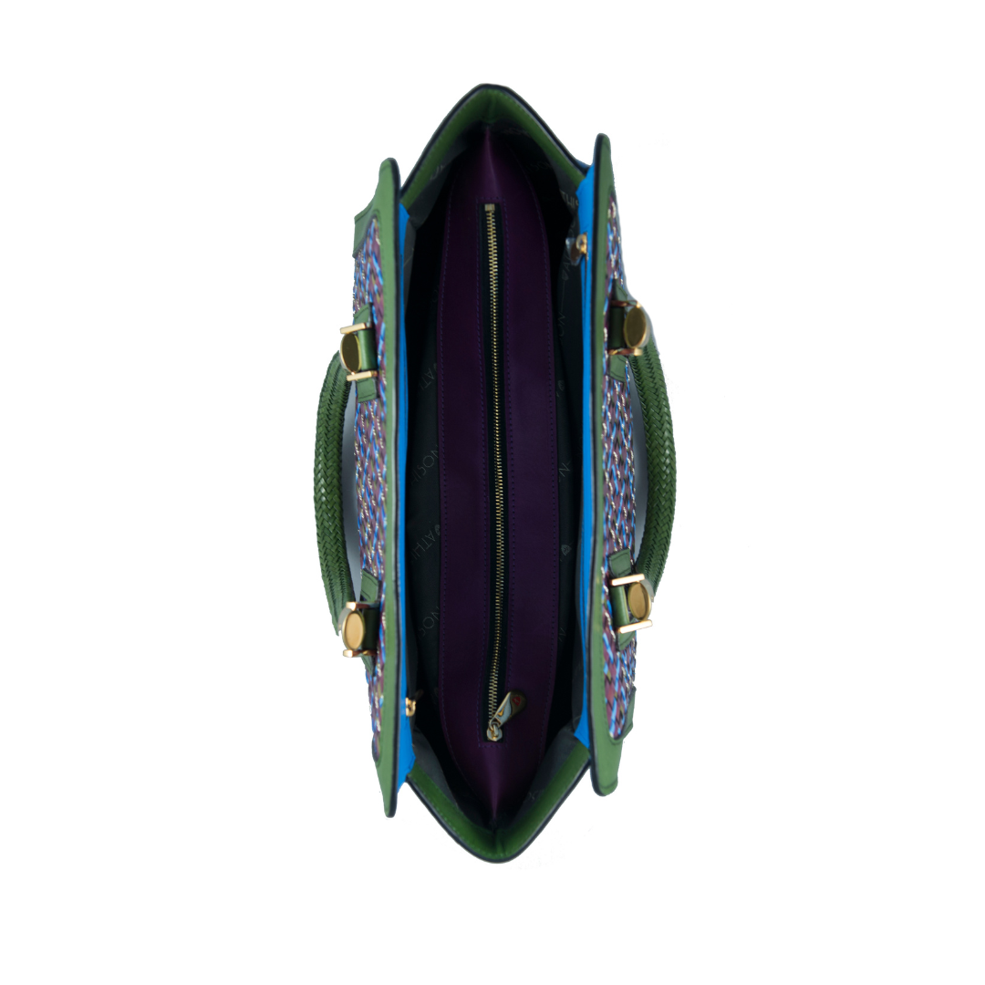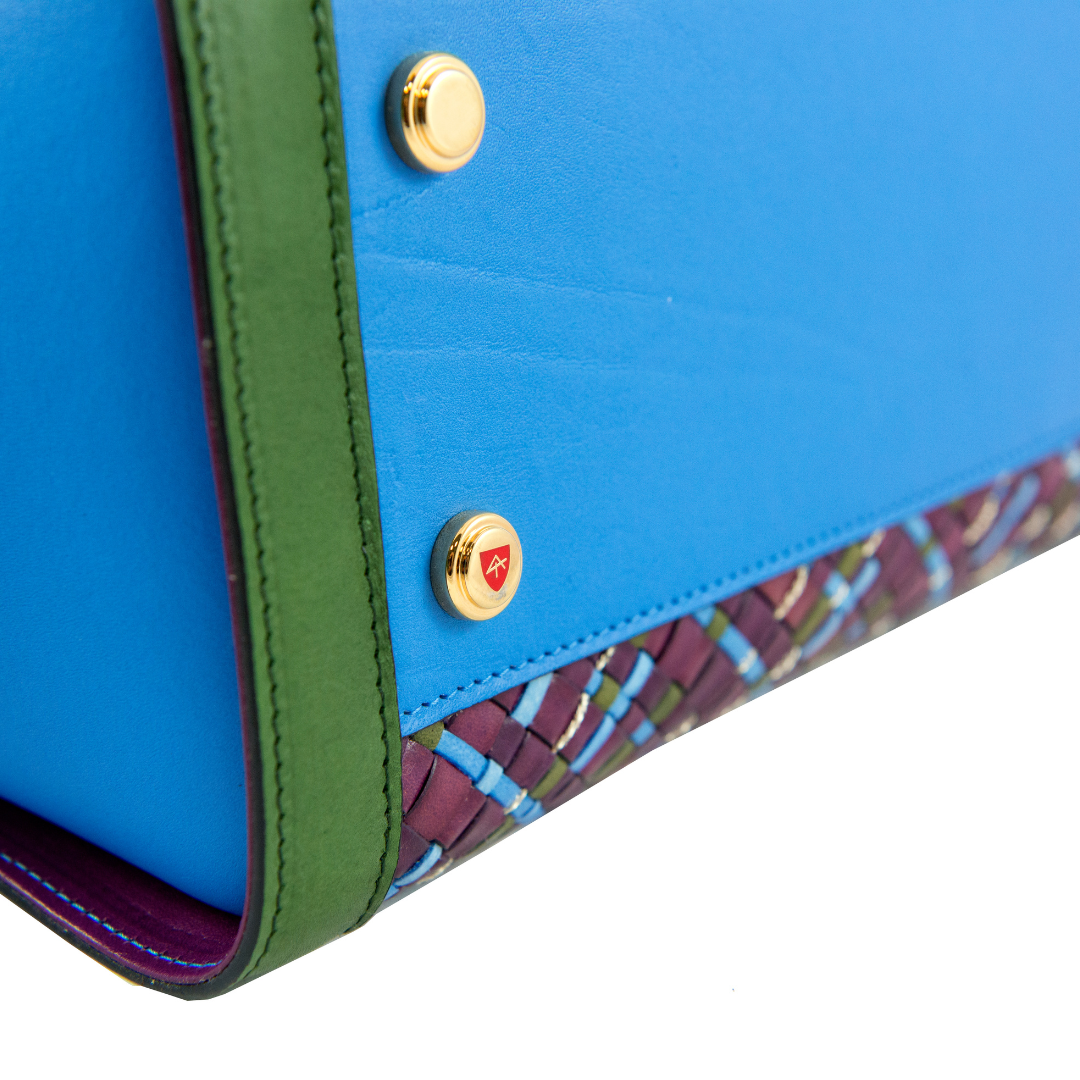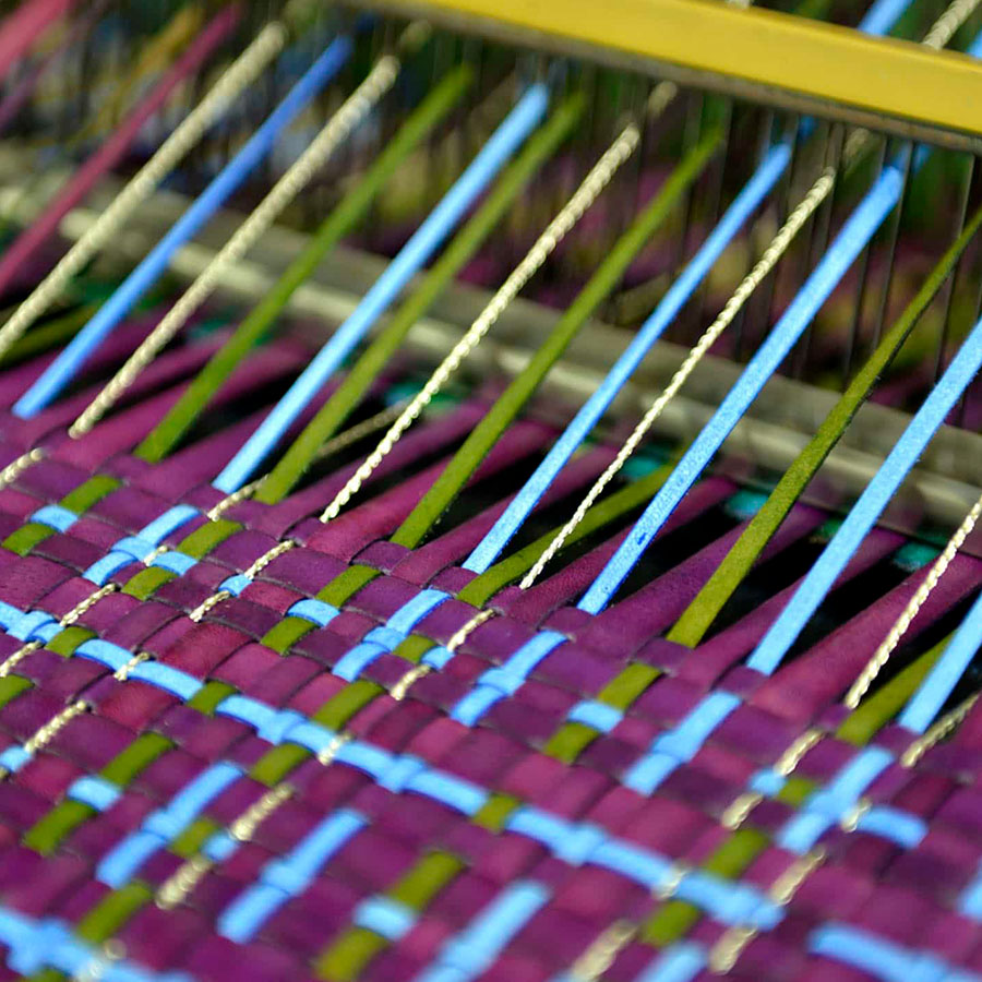 The material we use is the highest expression of the best vegetable-tanned leather skillfully processed by Tuscan suppliers. The bag is entirely produced in our plant. Leather is dyed using 100% non-toxic water-based colours and is cut into strips woven with thin copper wires on our exclusive looms. The production process is carried out by our expert technicians, paying the utmost attention and care to the smallest details.