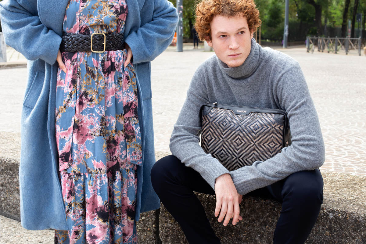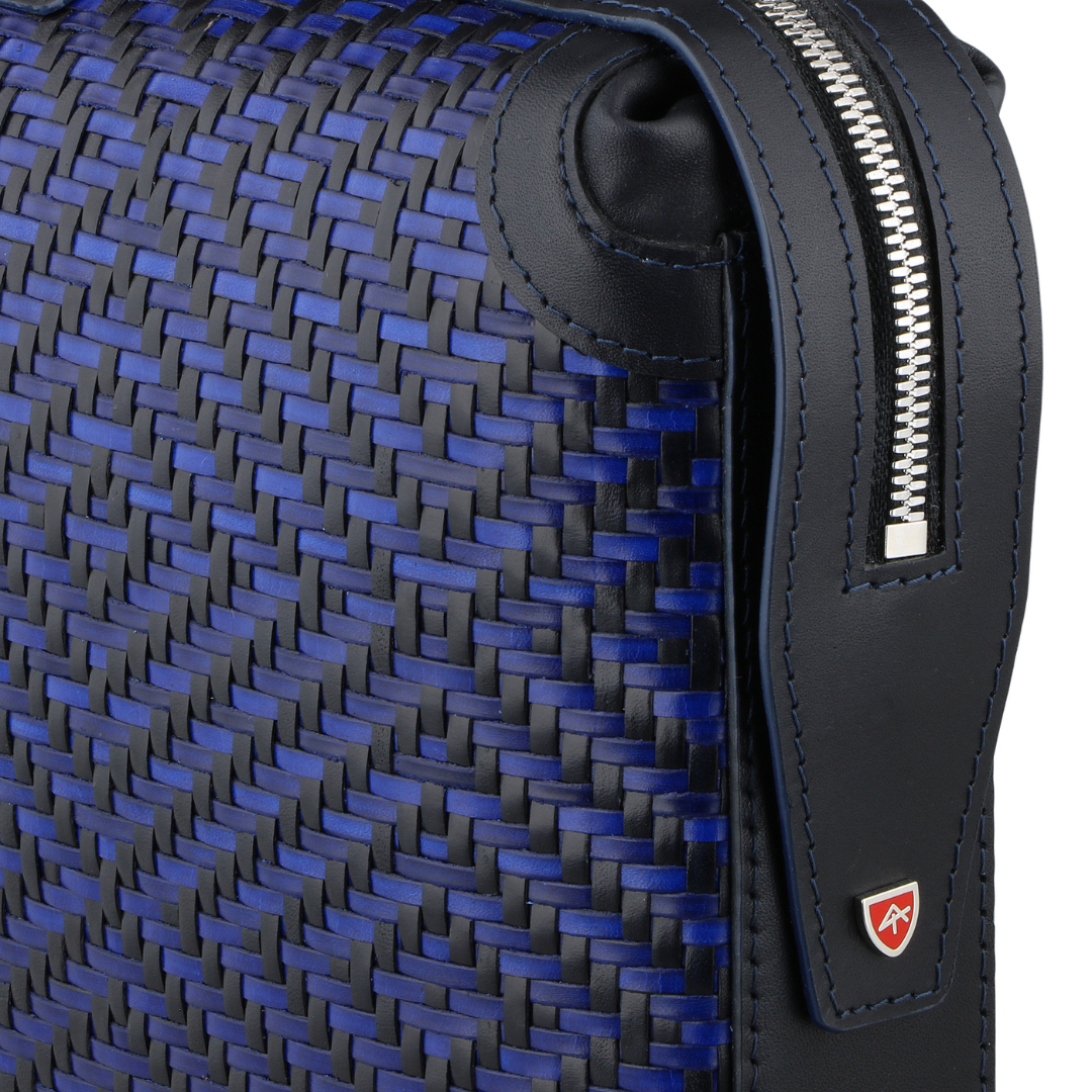The material we use is the highest expression of the best vegetable-tanned leather skillfully processed by Tuscan suppliers. The bag is entirely produced in our plant. Leather is dyed using 100% non-toxic water colours and is cut into strips woven on our exclusive looms. The production process is carried out by our expert technicians, paying the utmost attention and care to the smallest details.