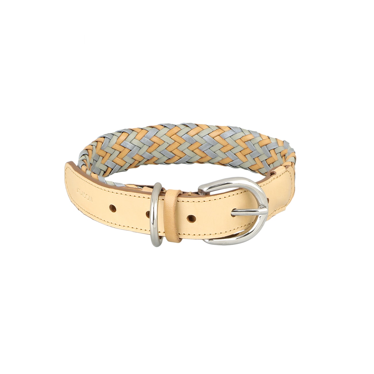 Very resistant leather and reflective fabric collar. It ensures greater visibility and safety by reflecting the light during dark hours. This item is wearable by medium/big sized dogs. Matching items: Athison’s reflective 11mm leash medium, Athison’s reflective bracelet (available in the same color combinations).
