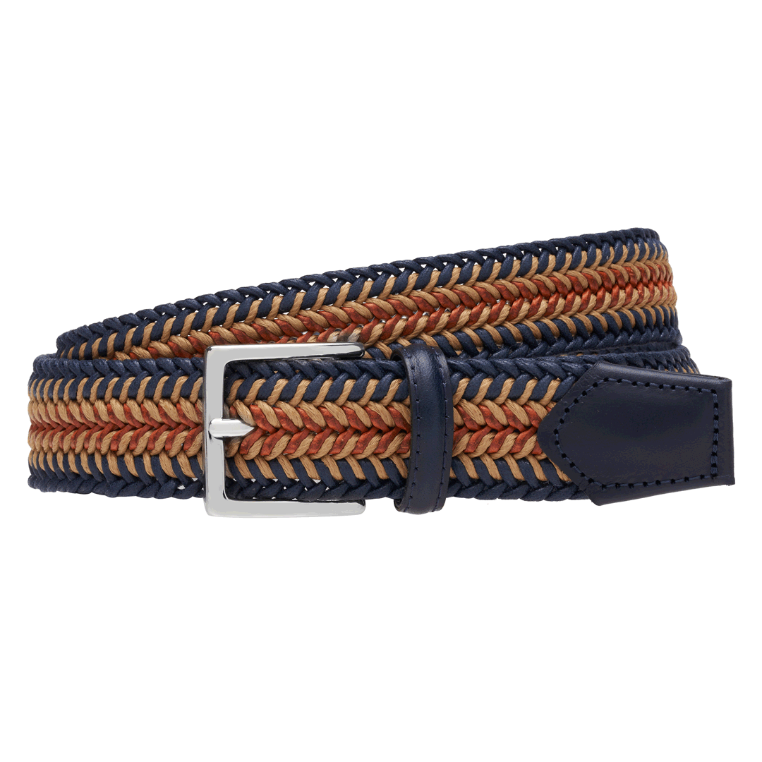 Stretch braided belt in waxed cotton.