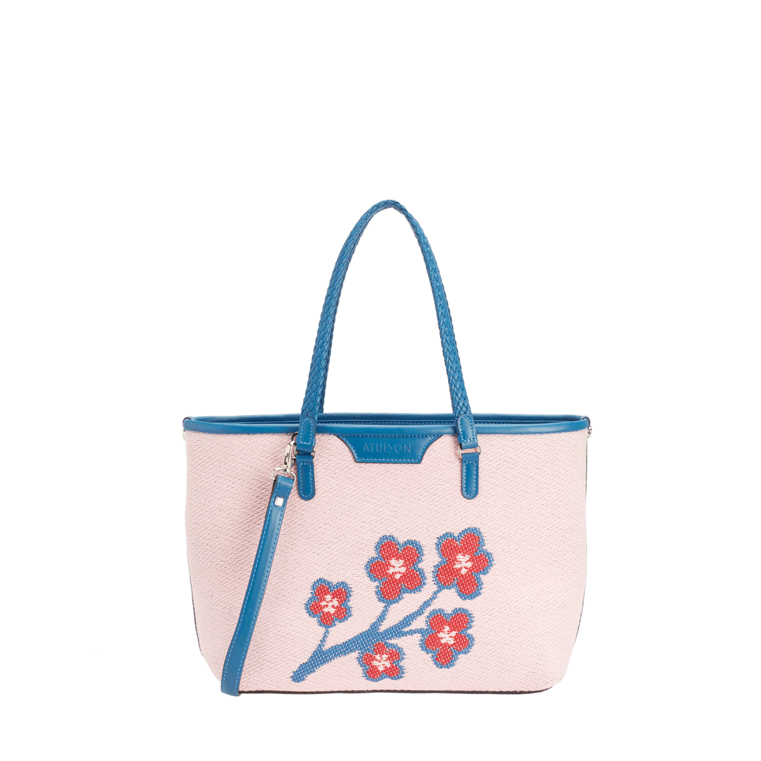 The Sakura Twig Ban Bag is made of braided cotton and the style is designed to reproduce the blossoming of the Japanese cherry tree.