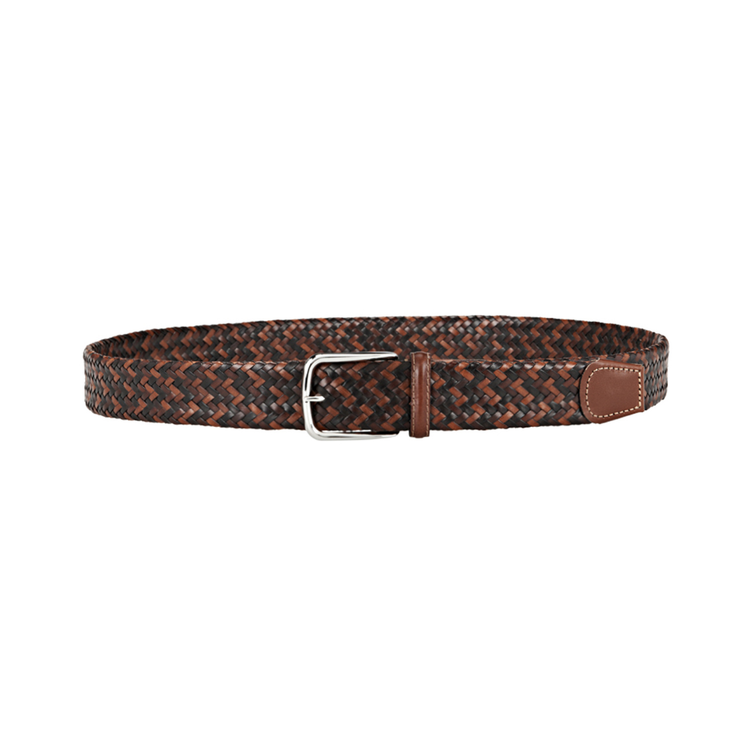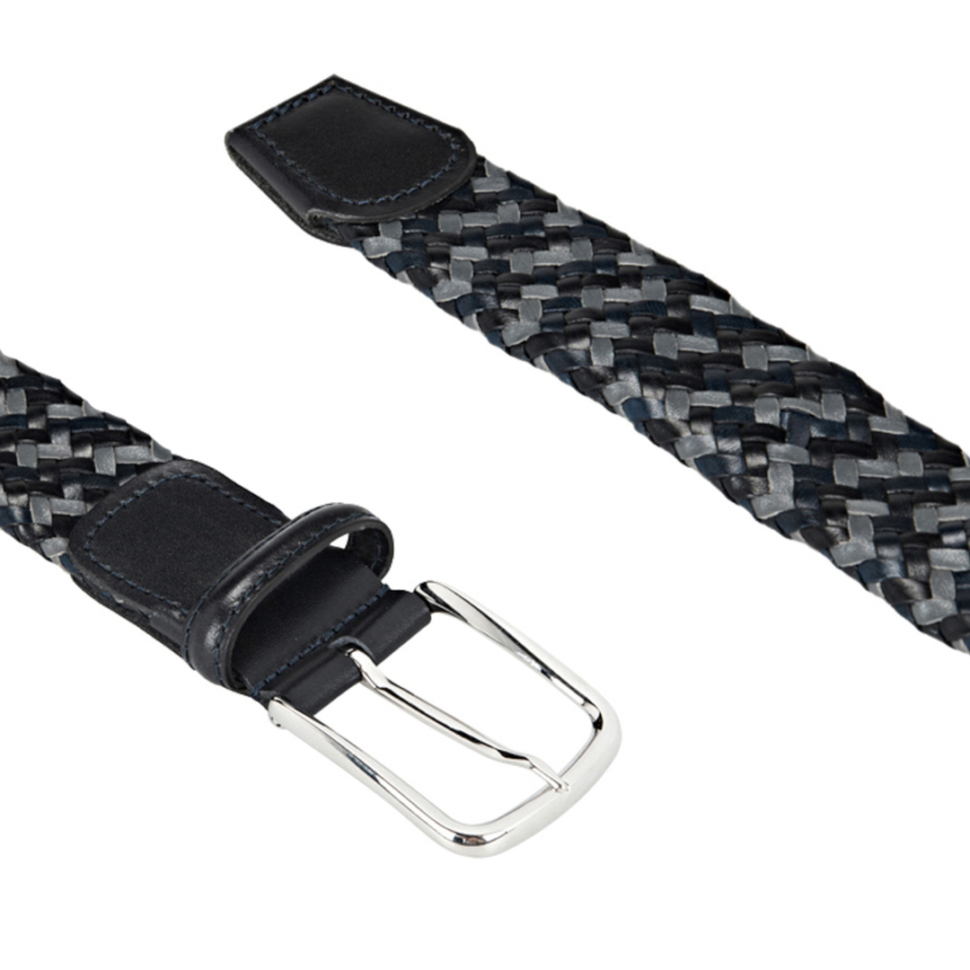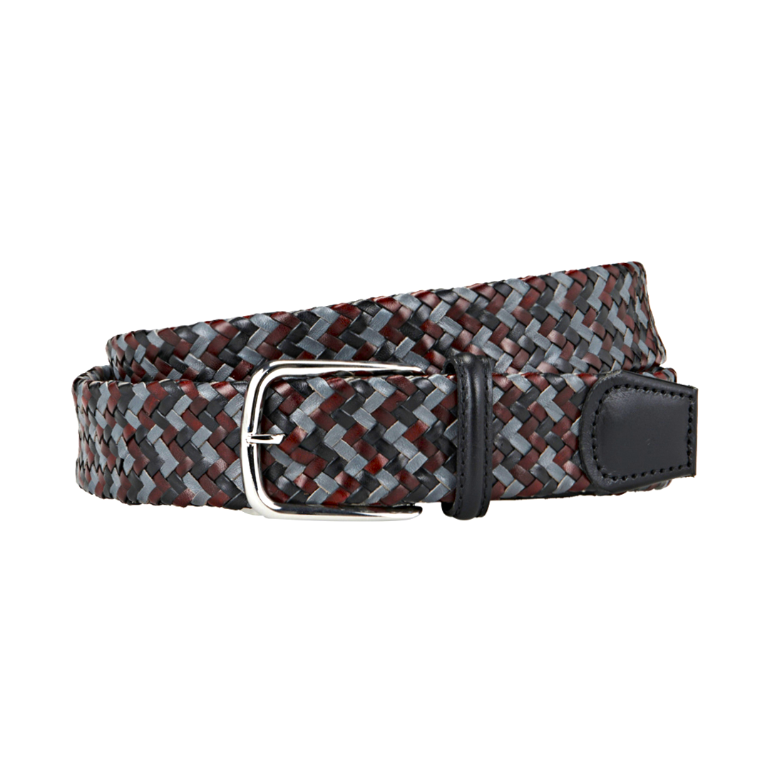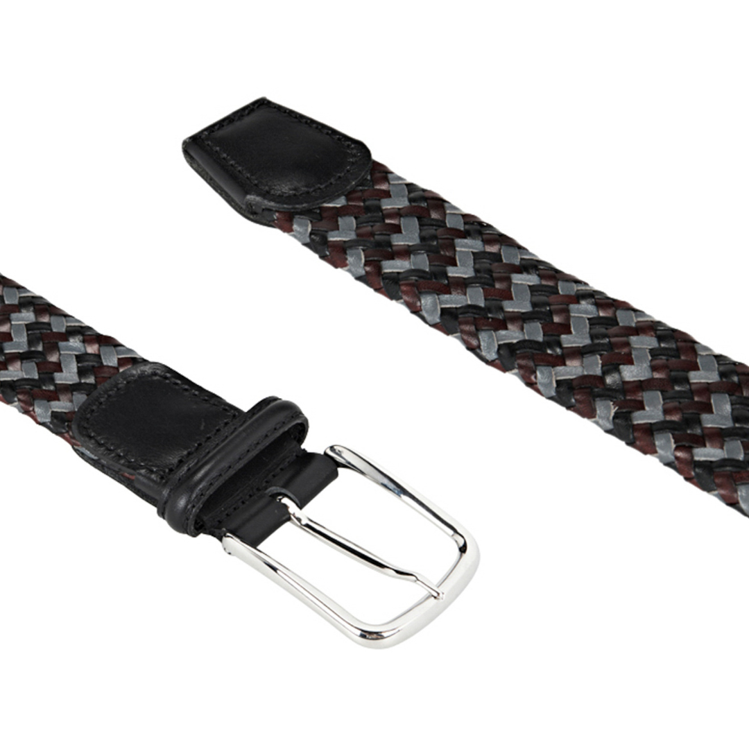 Braided tubular belt in fine Italian leather with a smooth leather tip.