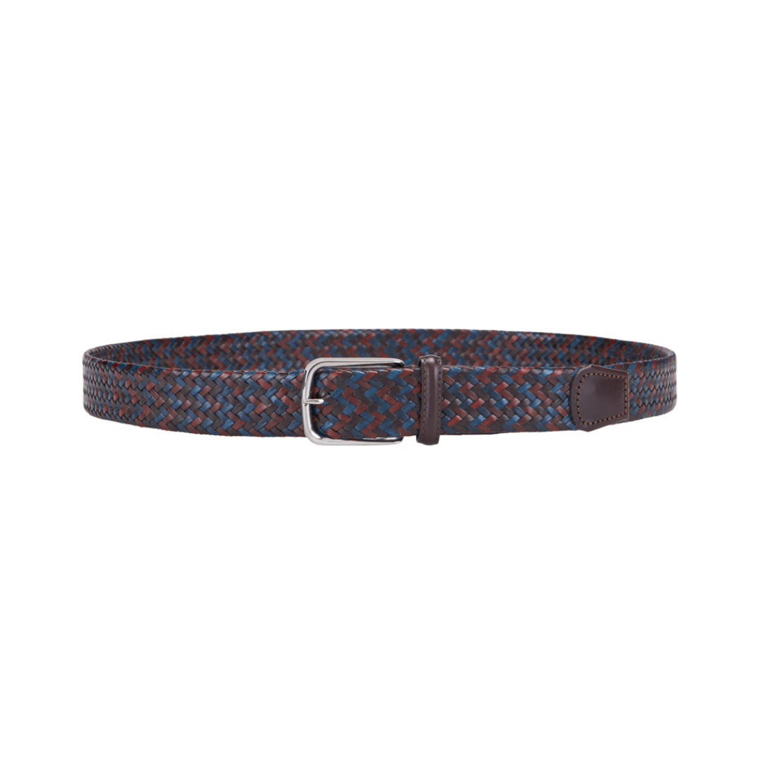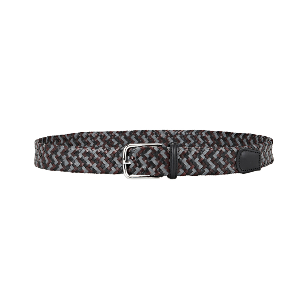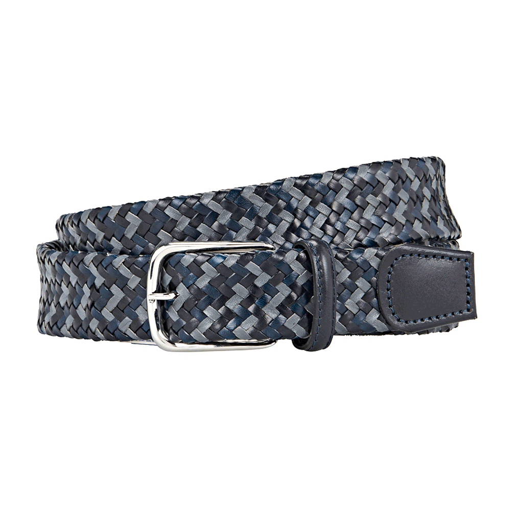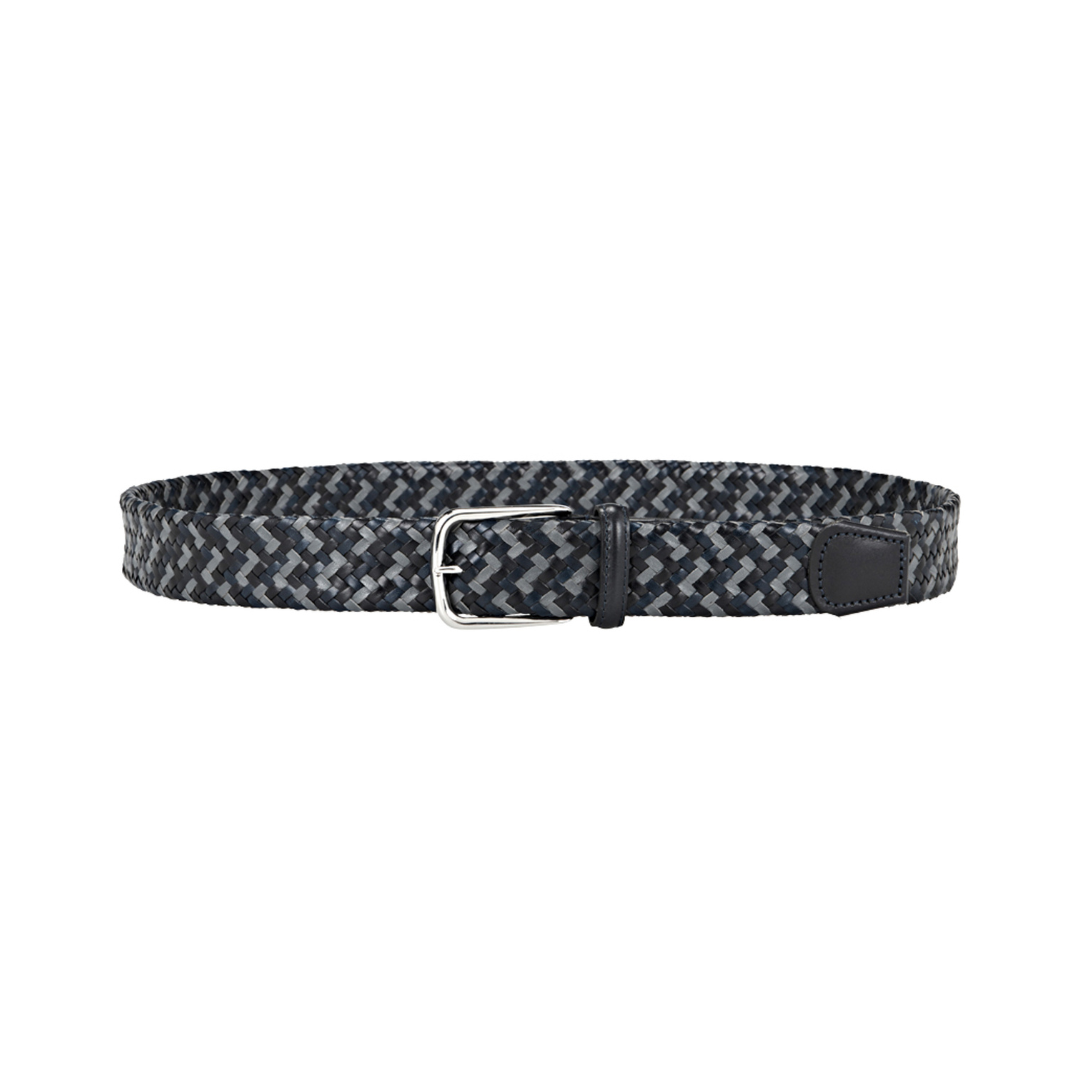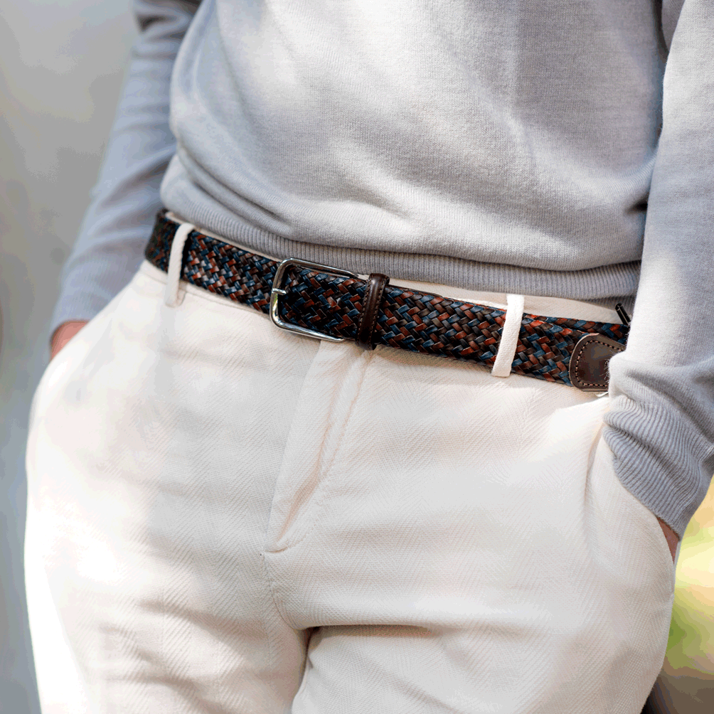 Braided tubular belt in fine Italian leather with a smooth leather tip.