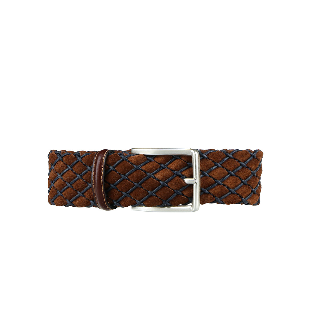 Braided tubular belt in suede and thin waxed cotton yarns.