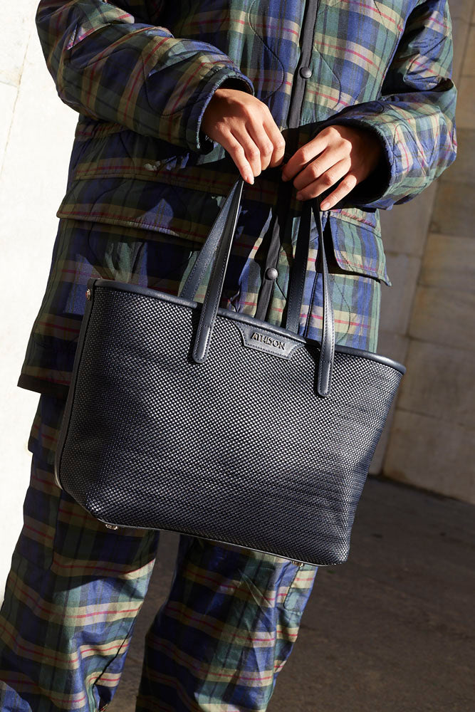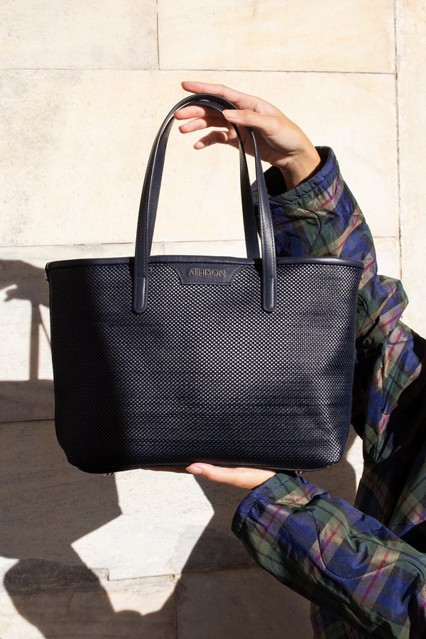 Crafted from braided recycled leather, the Ban handbag combines sustainability with refined craftsmanship. Its durable material offers a unique texture and visual appeal, perfect for those who appreciate both eco-friendly practices and elegant design.