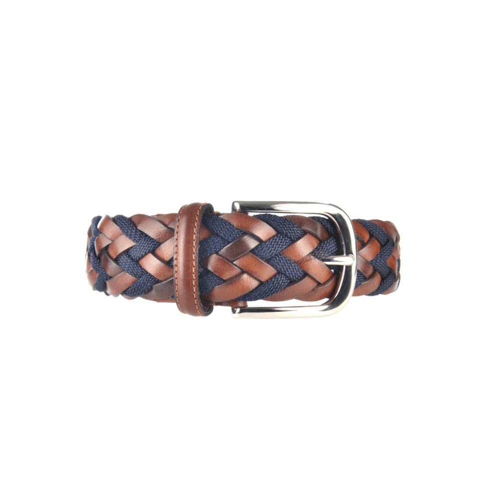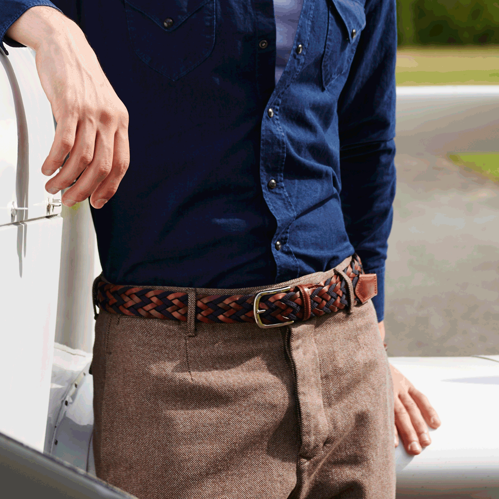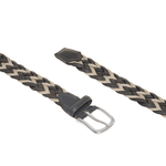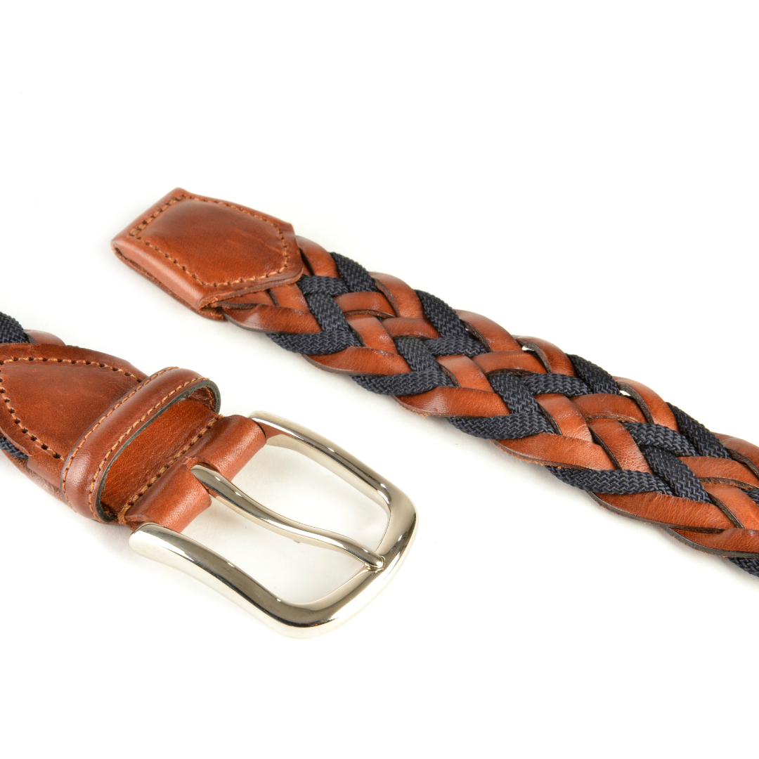 Ceinture tressée en cuir véritable et rayonne. L'association de ces deux matériaux crée un article intemporel. Passant et extrémité en cuir végétal de qualité.