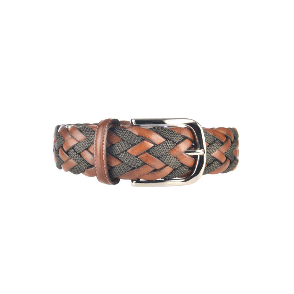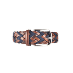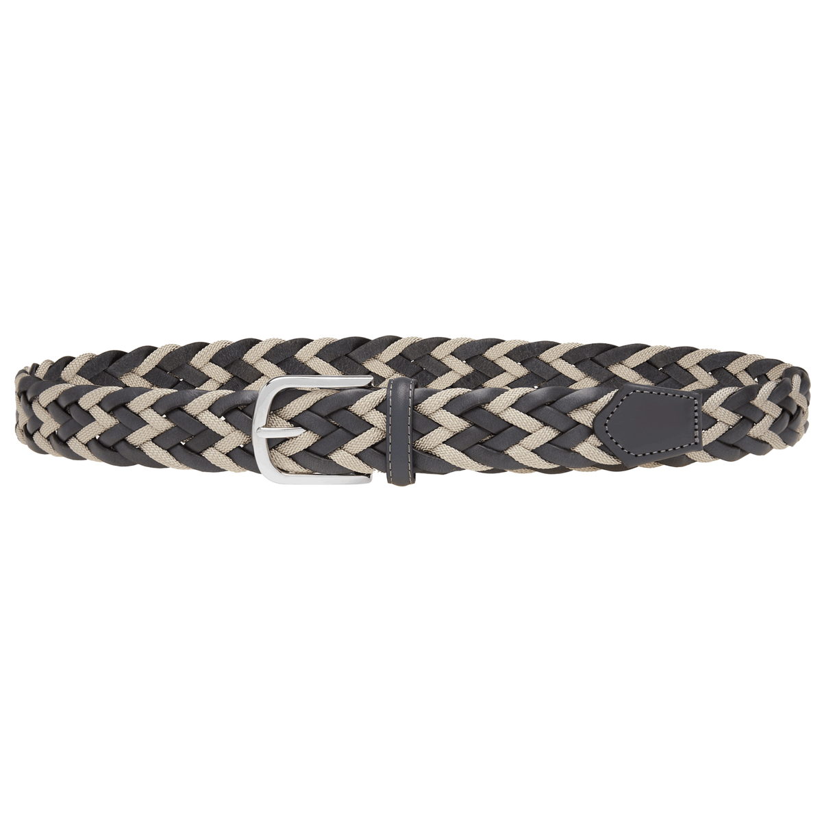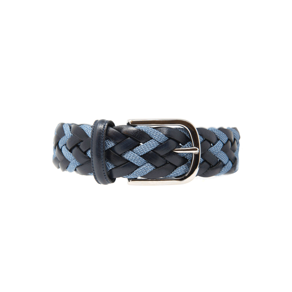 Ceinture tressée en cuir véritable et rayonne. L'association de ces deux matériaux crée un article intemporel. Passant et extrémité en cuir végétal de qualité.