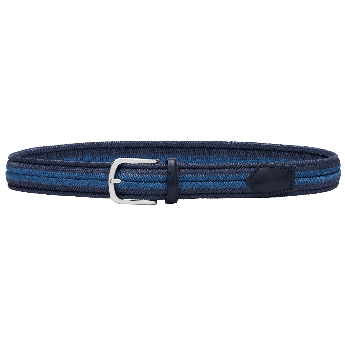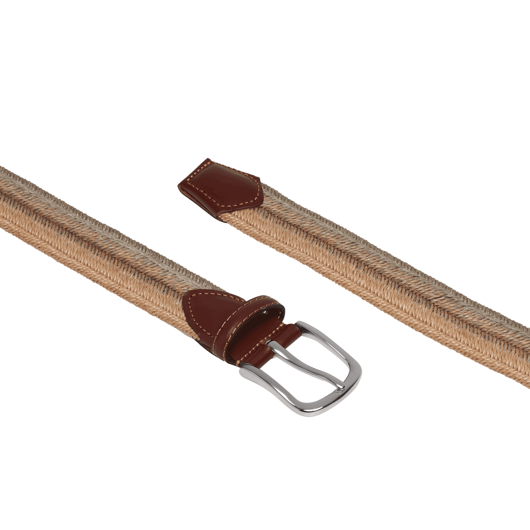 27 filati di lino ritorti sono intrecciati a spina di pesce per un numero infinito di combinazioni di colori. Il loop e la punta sono realizzati in pelle vegetale fine.
